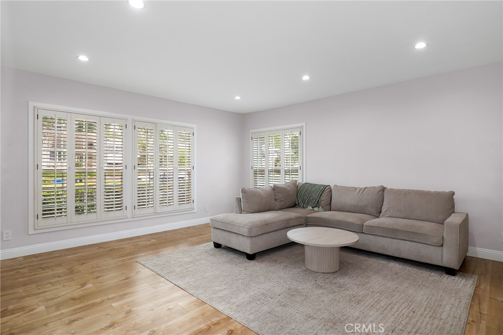 Inside, the home opens to a bright and inviting living space filled with natural light, complemented by updated flooring and recessed lighting throughout. The kitchen has been tastefully upgraded with modern cabinetry, sleek countertops, and stainless steel appliances, creating a space that’s both functional and perfect for entertaining.
