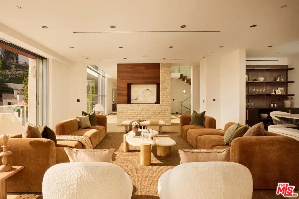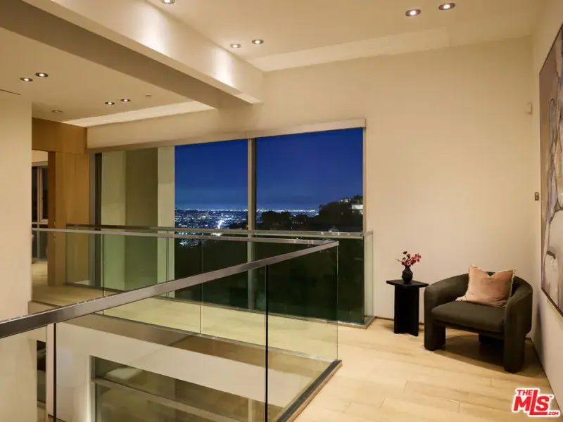 Experience iconic Hollywood Hills glamour at Queens Estate, set above the legendary Sunset Strip on a quiet, gated cul-de-sac at 1700 Queens Court, surrounded by some of the most coveted celebrity residences in Los Angeles. This striking modern residence blends architectural design, cinematic pedigree, and resort-style living. Thoughtfully restored and enhanced, this three-story estate offers approximately 5,612 square feet with four bedrooms and six bathrooms, framed by sweeping city-to-ocean views extending to Catalina Island. A gated motor court leads to interiors defined by volume and light, featuring 10-foot ceilings, a soaring 22-foot foyer, and walls of floor-to-ceiling glass. An open floor plan creates seamless flow between living, dining, and entertaining spaces, anchored by a chef’s kitchen with premium Miele and Wolf appliances, custom cabinetry, and integrated smart-home technology controlling the home’s functions. The bedrooms at Queens Estate are thoughtfully positioned for privacy and comfort, including three en-suite bedrooms with pool and city views, and a stunning primary suite wrapped in floor-to-ceiling windows capturing panoramic views of the Los Angeles skyline flowing into the Pacific Ocean. The primary retreat is complemented by a spa-style bath with a dedicated steam room powered by a 100-amp circuit. Designed for entertainment at the highest level, the home features a true private cinema with Dolby Atmos, a custom perforated projection screen, and extensive acoustic build-out, alongside a game and entertainment lounge with a full-service bar, wine cellar, and an en-suite guest bedroom. Outdoor living includes a heated saltwater infinity-edge pool, expansive terraces, a horizon-edge fire pit, and an entertainer’s-grade sound system a refined expression of luxury living in one of the most celebrated celebrity enclaves of the Hollywood Hills