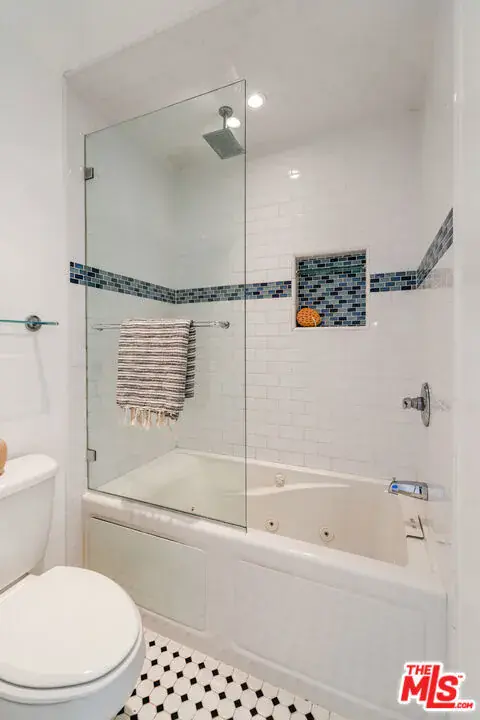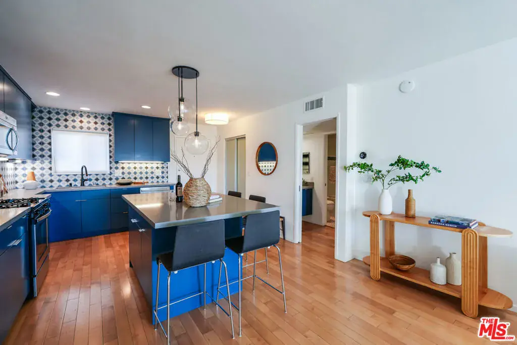 Nestled among charming single-family homes in the heart of Silver Lake, this fully renovated 1-bedroom, 1-bath residence offers the perfect blend of modern comfort, resort-style amenities, and iconic Los Angeles views. Spanning 777 square feet, the home features engineered wood floors, a beautifully updated kitchen, and a spa-inspired bathroom with a jacuzzi tub, perfect for relaxing after a long day. The light-filled living area is anchored by a cozy fireplace and showcases sweeping panoramic views stretching from the Griffith Park Observatory and Hollywood Sign all the way to Palos Verdes, with stunning sunsets that never get old. The secure, well-maintained building offers an impressive array of amenities, including a pool, laundry room, recreation room, and a 360-degree rooftop deck complete with BBQ, tables, and seating, ideal for entertaining or taking in the city skyline. The unit also includes two rare side-by-side parking spaces in secure parking and Nest temperature control for effortless comfort. Peacefully set yet close to Silver Lake’s best dining, shopping, and nightlife, this turnkey home delivers elevated LA living with unforgettable views and exceptional amenities.