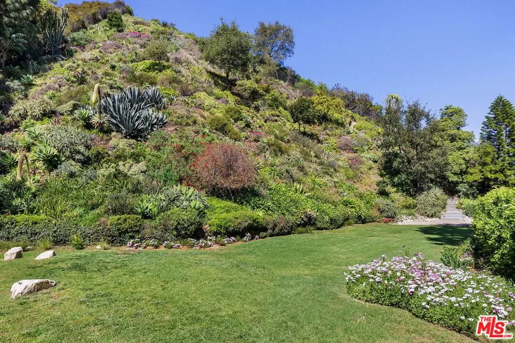 This 1966 architectural gem by Donald L. Wilbur, AIA, is sited above the road for privacy and serene canyon views. Meticulously updated with premium finishes and thoughtful design, this single-story home on nearly an acre blends indoor-outdoor living through Fleetwood doors and lush landscaping. Features include custom chef’s kitchen, luxurious primary suite, versatile bedroom wing, and extensive 2010-2011 upgrades. Gated entry, expansive motor court, and potential for ADU access via over 220 + feet on Stone Canyon Road make this a rare and refined retreat. Room for a pool.