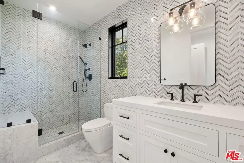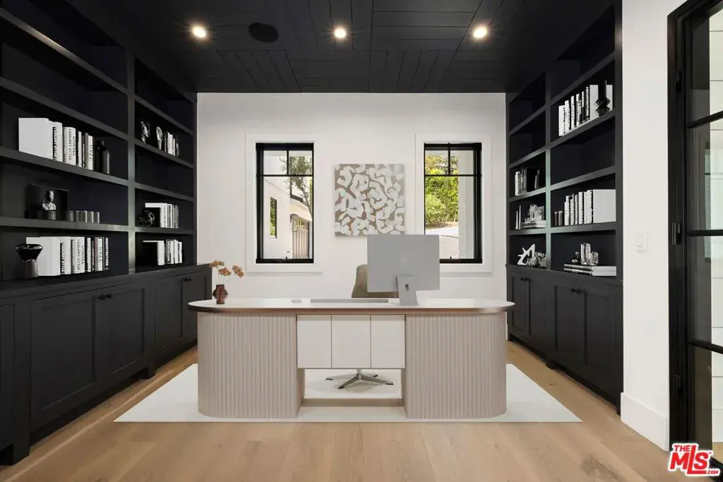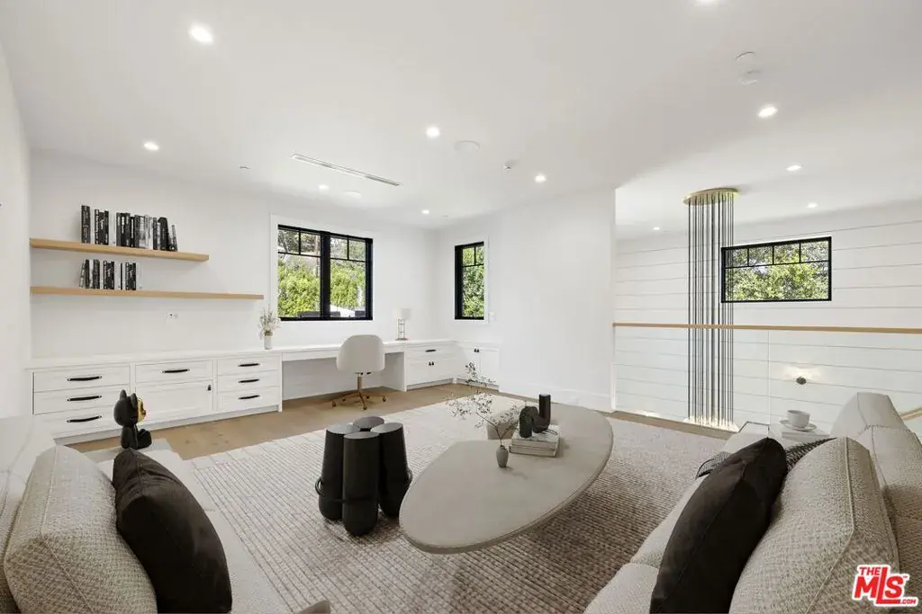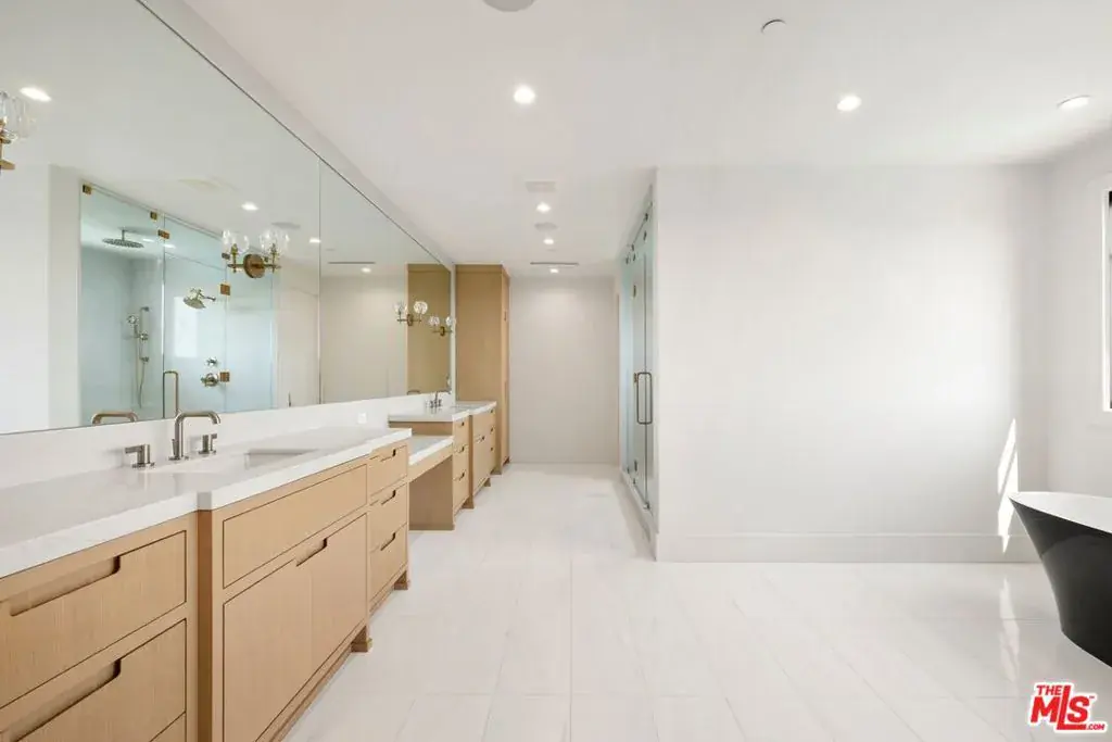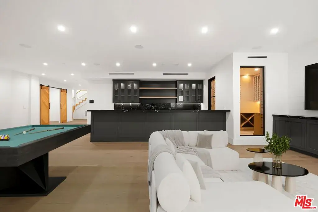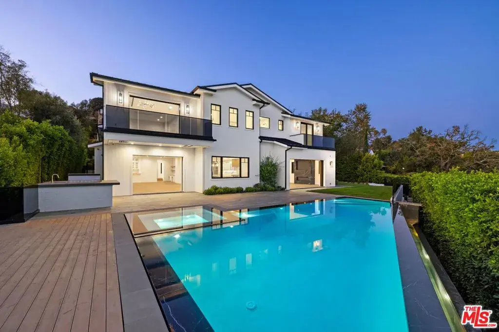 Tucked at the end of a cul-de-sac, this brand-new 10,500 sq. ft. Brentwood estate blends clean modern design with resort-style amenities and sweeping Pacific Ocean and city views. The main level offers formal living and dining rooms, a front office, and an open-concept family room that flows into a chef’s kitchen with Wolf appliances, porcelain counters, butler’s pantry, and breakfast nook. Walls of glass open to a grassy yard, infinity-edge pool, and outdoor kitchen with BBQ ideal for entertaining. The home features 7 ensuite bedrooms, including a downstairs suite and a spectacular primary retreat with dual vanities, soaking tub, oversized shower, and a private balcony overlooking the ocean. Four additional guest bedrooms each enjoy their own baths on the upper level. A pajama lounge and upstairs laundry add convenience. The lower level is an entertainer’s dream with a basement bar, temperature-controlled wine room, private theater, gym, steam room, and flexible space perfect for a second office. Additional highlights include an expansive upper deck with panoramic views, metal roof, elevator, multi-zone HVAC, central vacuum, alarm system, mud/laundry room with dog wash, and 3-car garage. This is a rare opportunity to lease a newly built, private estate combining elegance, function, and breathtaking views.