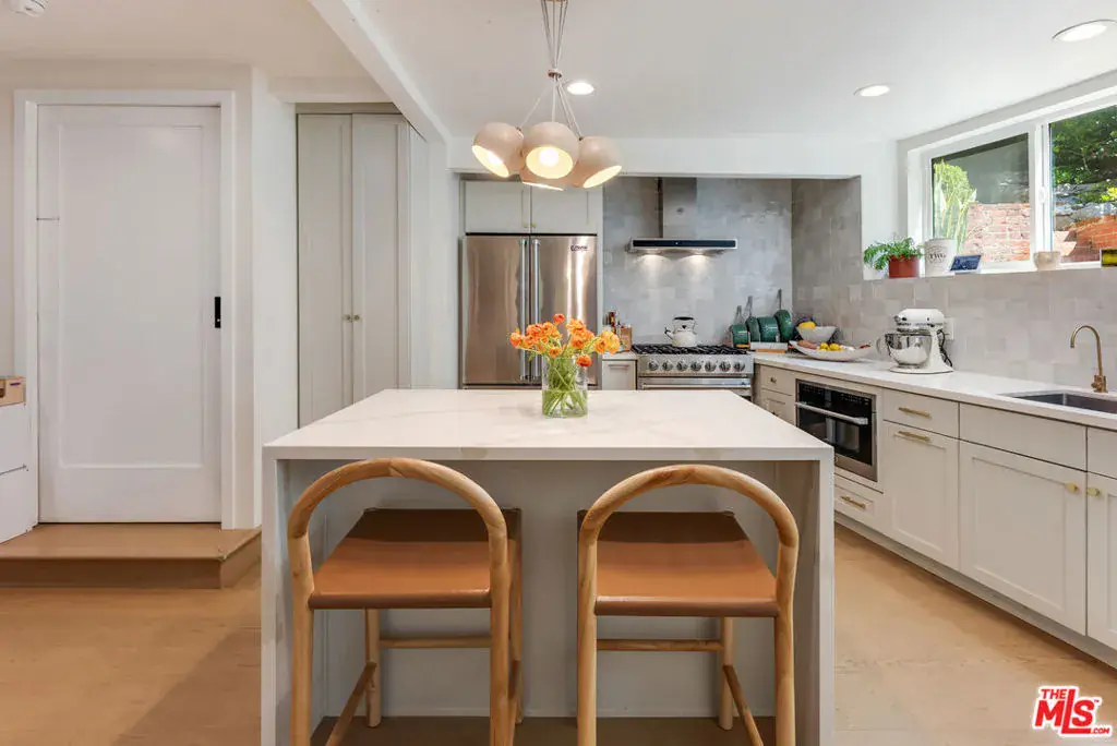 Private retreat in the city! This remodeled 1920s Mt. Olympus home offers a blend of historic charm and high-end modern luxury. Nestled off a private road leading to a quiet cul-de-sac, the residence features over +1,500 square feet with two formal bedrooms + an additional flex room ideal for a home office, and two bathrooms. The vaulted living room and open-concept gourmet kitchen are filled with premium features, including hard surface flooring, high-end appliances, quartz countertops, designer backsplash, and a breakfast island. The Double French doors lead to an expansive balcony, while exterior spaces include a side patio and an upper-backyard perfect for stargazing and outdoor living. The private upper-level primary suite serves as a personal sanctuary, complete with a walk-in closet and spa-like amenities. Meticulously updated, the home includes a newer roof, HVAC system, copper plumbing, and a 200-amp electrical panel designed to support modern electrical needs. Ideally situated in a secluded hillside neighborhood, this residence is also just a short distance away from the Sunset Strip’s premier restaurants, shops, and entertainment. Come make this city sanctuary yours.