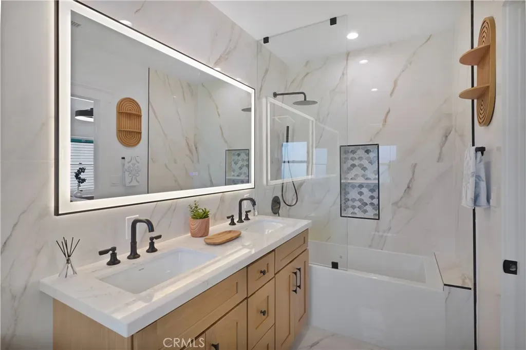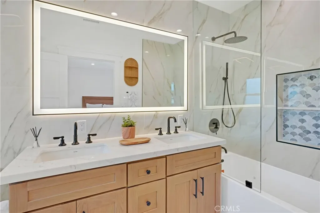 Completely re-imagined & rebuilt from top to bottom, this stunning Harvard Heights Historic District residence blends historic charm with modern luxury. Offering 2,071 sq ft, this remodeled home features 4 spacious beds, 2.5 baths (Convenient Half Bath Downstairs), all upgraded w/ high-end finishes & brand-new systems. All remodeling was completed with permits, providing peace of mind. Step inside to a bright, open-concept layout with a functional floor plan that connects every space, perfect for everyday living & entertaining. At the heart of the home is a kitchen that flows seamlessly into the living & dining areas, featuring Redondo Oak shaker cabinetry, Carrera-style quartz waterfall countertops,& Nova Dolomite Brass Polished Marble Mosaic backsplash, delivering a timeless designer aesthetic. This gorgeous home features premium name-brand appliances that will remain w/ the property, making the kitchen a true culinary dream for anyone who loves to cook & entertain. Major upgrades include all-new copper plumbing throughout, a new sewer line,& a complete electrical overhaul with new Romex wiring & Electrical panel. Child-safety outlets are throughout, with integrated USB-A & USB-C outlets in beds & baths. All switches are new, with dimmers in every bedroom. Comfort & efficiency are enhanced with full insulation throughout home, including attic & main bath, plus a dual-zone AC/heat system with 2 independent units in the attic & basement for optimal climate control. Every surface has been renewed with new drywall, designer paint, recessed lighting, modern fixtures, & engineered hardwood flooring from the Spectacular Herringbone Collection in Glacier Stone. Exterior upgrades include a NEW 25-year Warranty shingle roof w/ Cool Roof technology & synthetic underlayment, & low-maintenance landscaping w/ stabilized decomposed granite (DG). The backyard is ideal for entertaining, complete w/ luxury outdoor furnishings from Janus et Cie. Enough Parking for 5-6 Cars (Driveway + Garage). Prime central location: 5 minutes from Downtown LA & Vibrant LA LIVE, 8 minutes to Culver City, 3 minutes to Prestigious Loyola High School,5 minutes to USC,20 minutes to UCLA & Beverly Hills, 20 Minutes to Famed Santa Monica, & 15 minutes to Hollywood & The Sunset Strip. Homes w/ this level of remodeling, infrastructure, & location rarely come available. A rare opportunity to own a fully modernized luxury home in one of Los Angeles’ most historic & sought-after neighborhoods.