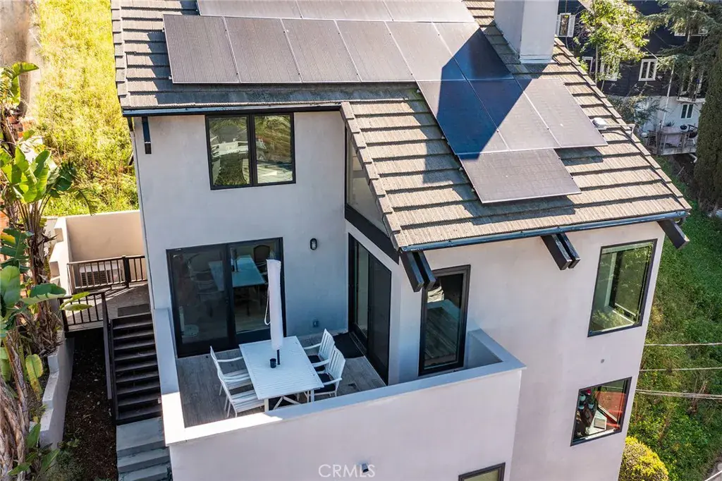 Extensive improvements include solar with 25 QCell panels, new roof and skylight, updated electrical, new windows and sliding doors, upgraded HVAC, waterproofed patio, and whole-home water filtration.