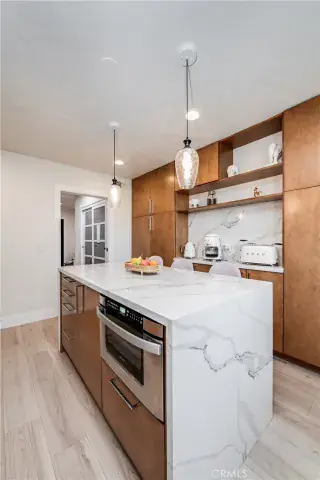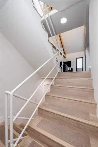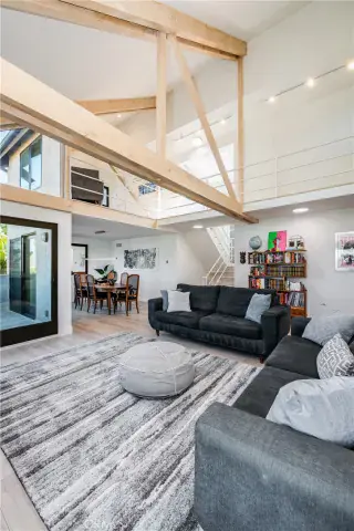 The main level connects seamlessly to a patio overlooking the Silver Lake Reservoir, creating an effortless indoor-outdoor flow. The renovated kitchen features new countertops, appliances, and lighting, complemented by updated baths and wide-plank SPF flooring throughout. The primary suite occupies its own private level, while a mezzanine loft offers flexible space for a studio, office, or reading retreat. Three additional bedrooms provide versatility for guests or den use, and the three-car garage offers direct access.