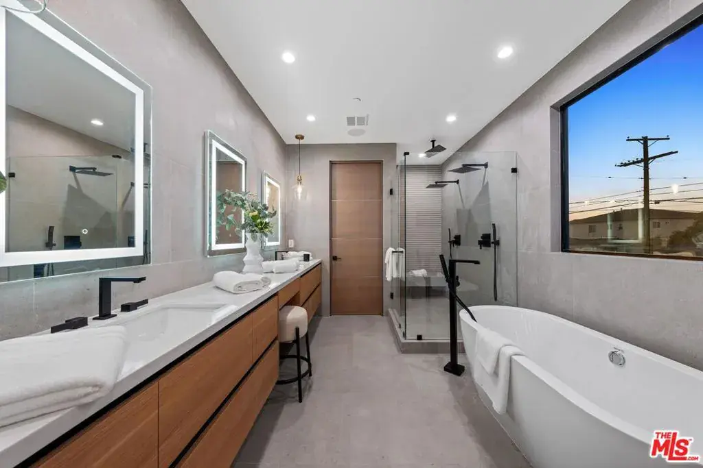 A masterpiece of modern luxury in the heart of Crestview. Nothing overlooked here to provide a lifestyle that caters to all your needs. Finished with stunning and high-end quality details. Fleetwood windows and sliding doors throughout the house. Built as 5 bedrooms and 5.5 baths as featured, or could be modified as a home with separate living quarters for in-laws or a rental unit. With its flawless design, it is a perfect home for a growing family and professionals needing a home office space. The 5th bedroom, currently staged as an office is an extra-large room; would be your ideal home office that has its own separate entrance from the outside. Great open floor plan that is perfect for entertaining and your everyday living and dining desires. The main floor features a formal living room, dining room, family room with surround sound system, and a gourmet kitchen with a walk-in Butler’s pantry with a food prep area, a third sink and a second dishwasher. The king-size gourmet chef’s kitchen, with a large adjoining family room, showcases high-end finishes, top-of-the-line SubZero/Wolf appliances, a separate double oven, a warming drawer, an oversized island, lots of storage cabinets, and Taj Mahal counters. Beautiful custom floating stairs and glass enclosed wine storage. One en-suite bedroom is conveniently located on the main floor as well. All bedrooms are spacious and are en-suite. The primary bedroom features a large walk-in closet, European style custom cabinets, a fireplace, surround sound, and a luxurious bathroom with a freestanding soaking tub. The primary bedroom opens to a massive deck with breathtaking views and outdoor speakers. This home is equipped with a Control 4 smart home system, allowing you to set your home to your comfort standards with a touch of a button. Walk into your own private retreat that has a completely enclosed back yard, extra-large side yard for play area or gardening, pool/spa, and a water feature that makes you feel the tranquility.