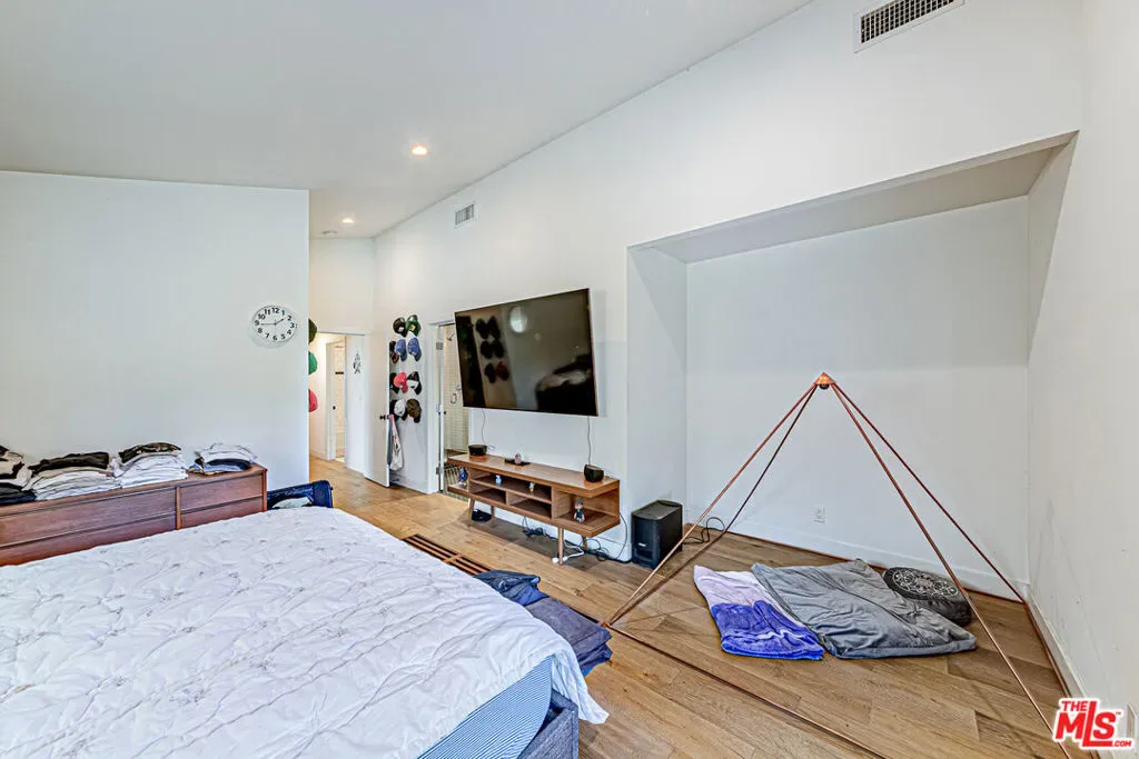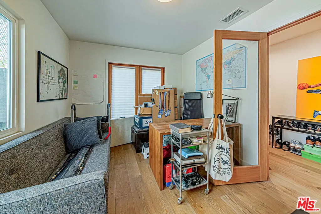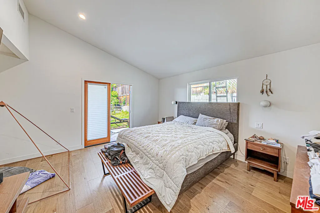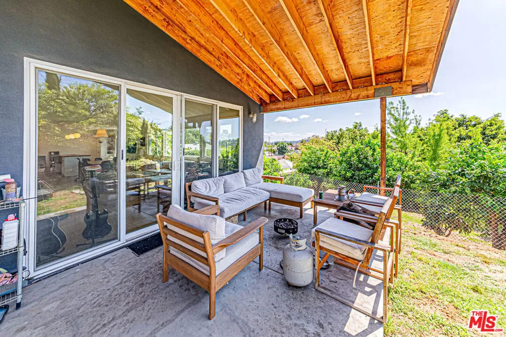 Rare Highland Park view home. Some houses in Highland Park look updated. This one was rebuilt. In 2015, the owner demolished and reconstructed most of this home from the foundation up with full permits investing over $255,000 in total documented costs: $215,000 in contractor construction plus $35,000+ in owner-supplied finishes, fixtures and appliances. In today’s labor and materials market, that same work would cost $650,000+. New foundation, new framing, new electrical, new plumbing, new HVAC, new roof, new windows, new insulation, new drywall. Every major system is effectively new construction inside a 1,647 sq ft footprint. The architecture speaks for itself. A dramatic open-plan great room connects kitchen, dining and living in one continuous light-filled space. Vaulted angled ceilings. Globe pendant lighting. Engineered hardwood floors throughout. A rear window wall that frames panoramic city and hillside views so striking that every first-time visitor stops and stares. The master suite was part of the new addition high ceilings, French doors opening to the exterior, and a designer bath with frameless glass shower, black hex tile floors, double quartz vanity and full mirror wall. The guest bath has subway tile, hex floors and clean modern fixtures. A third bedroom currently configured as a home office with closet completes the interior. The outdoor experience is unlike anything else in Los Angeles. Step outside to a covered rear patio with exposed redwood beam ceiling a fully furnished entertaining terrace framing that same unobstructed panoramic city and hillside view. Fire pit. Established fruit trees. Lush mature landscaping on every side creates a level of natural privacy that feels almost impossible to find in LA no blinds needed, no curtains required. The neighbors’ mature trees extend seamlessly into your sightline creating the feel of a private forest rather than a city backyard. A wooden fence lines the rear. Established trees cover the sides. You can count on one hand the number of times you’ve seen your neighbors in 10 years. This is a genuine sanctuary completely secluded, completely quiet, completely yours. Out front, a lush established garden and private front deck create an arrival experience that stops people before they even walk inside. Towering trees, layered plantings and a serene deck make the front of this house feel more like a nature retreat than a Highland Park hillside. The kind of place where you sit with your morning coffee and forget you’re in Los Angeles. The 2-car garage is a genuine rarity on a hill property with a brand new smart door programmable via iPhone and potential to convert to additional living space. And because this home sits at the ideal mid-hill elevation, guests never have to fight for parking: abundant street parking exists just steps from the front door. This is the house that people walk into once and remember for years. Clean permits. Documented rebuild. Extraordinary privacy. Transferable pride of ownership