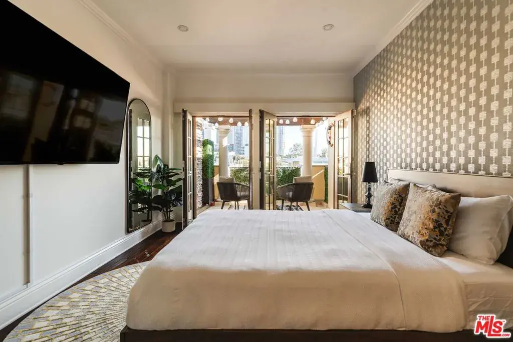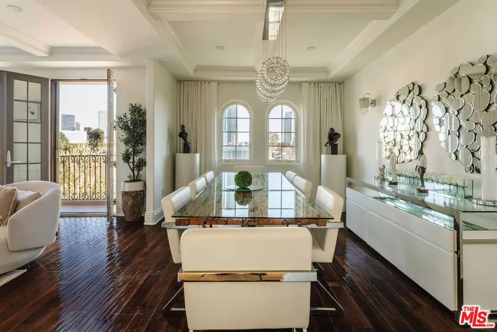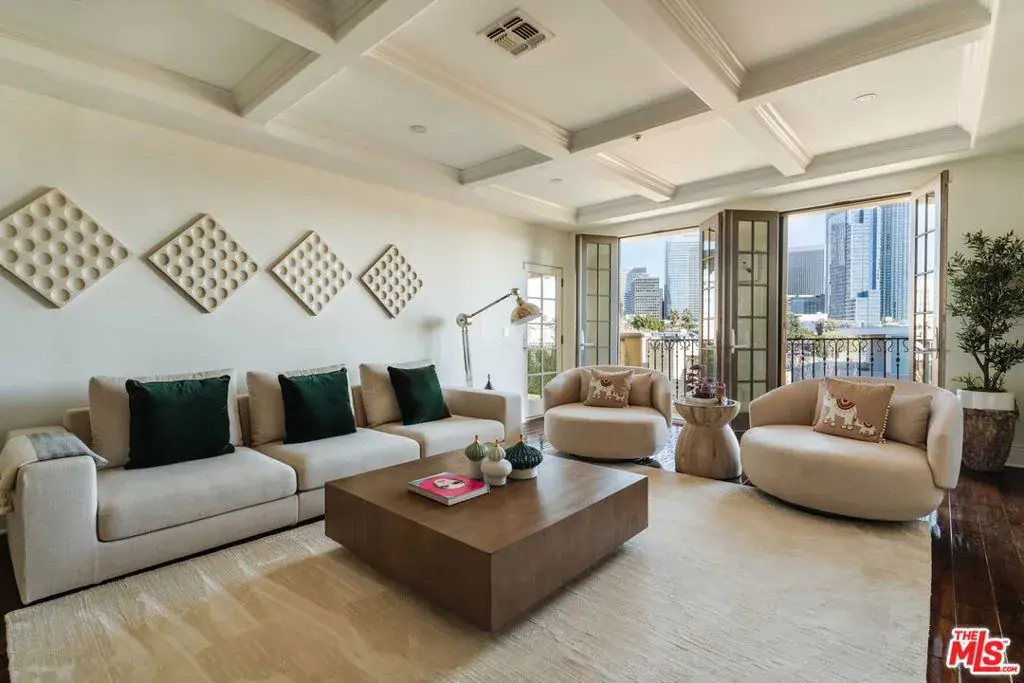 This bespoke contemporary penthouse offers over 3,100 SF of refined living with incredible city and mountain views from the heart of the residence. Upon entry, guests are welcomed into a foyer lined by gallery walls. Down the main hallway is the formal living room with sublime city views out to Century City. Through the formal dining room, find the recently redone kitchen with top appliances from Wolf, Viking, and Sub-Zero, and gorgeous stone countertops. The family room with fireplace flows from the kitchen and is perfect for entertaining small gatherings and large parties alike. Down the hall are the three guest suites including the expansive primary suite featuring a spacious walk-in closet and spa-like bath with dual vanities, a large soaking tub, and oversized shower. The guest bedrooms are generously sized, with one of the two bedrooms featuring a balcony that pours out to sprawling views of the city and mountains. Meticulously crafted with custom moldings, coffered ceilings, and premium wood/stone floors. This offering features a full-sized laundry room with a utility sink, dedicated storage, garage with tandem parking along with a designated electric car charger and an additional spacious storage room, as well as building perks like visitor parking and a gym. Perfectly positioned moments from the boutiques and restaurants of Century City and Beverly Hills. This move-in-ready residence delivers elevated living at its finest, offering the privacy, scale, and sophistication of a luxury estate without the maintenance of a single-family home.