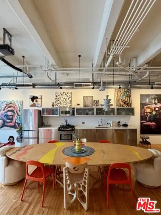 Historic-Cultural Monument no. 888, Built in 1925 by Eckel and Aldrich, Architects in the Beaux-Arts style. Dramatic designer space with very rare roll up exterior door in the highly sought after Biscuit Company Lofts. Encompassing over 1,100 square feet in the DTLA Arts District, Unit 110 marries the drama of its industrial past with chic modern finishes and amenities. The space offers voluminous concrete high ceilings, exposed brick wall, hardwood floors throughout, stainless steel kitchen and marble elements in the bathroom. Enjoy substantial property tax breaks due to Mills Act designation. Blocks from SoHo House, Maru Coffee, Bavel, Bestia, The Good Liver, Everson Royce Bar and an endless roster of the cities best restaurants, coffee shops, boutiques and nightlife. The building offers a sun drenched pool and outdoor lounge area, fitness room, front desk and concierge. One deeded parking space included in sale.