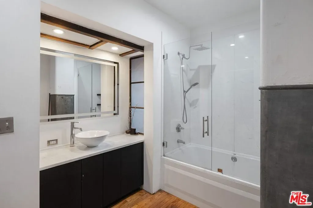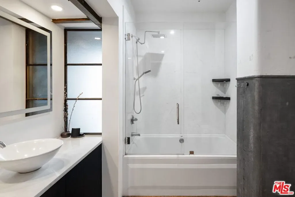 This stunning two-level factory loft is a true standout, located in one of the Arts District’s most coveted buildings, The Biscuit Company Lofts. Filled with beautiful natural light, the residence features soaring 16-foot ceilings, original maple hardwood floors, and an open, airy layout that feels both expansive and inviting. The kitchen is chic and functional, featuring a marble backsplash and wine fridge – designed for both style and everyday ease. A Bosch washer/dryer combo is conveniently located within the unit. A custom-built steel mezzanine adds architectural interest and versatility, offering the opportunity to easily create a second bedroom or office below, depending on your needs. A spacious walk-in closet completes the interior. Located just moments from some of the Arts District’s most sought-after destinations – including Bestia, Zinc Cafe & Market, Hauser & Wirth, Soho Warehouse, and ROW DTLA – the home offers effortless access to the neighborhood’s best dining, culture, and lifestyle. Residents of The Biscuit Company Lofts enjoy 24-hour concierge service, a beautifully designed lobby, and a lush outdoor garden featuring a saltwater pool, fireplace, and BBQ areas – an ideal extension of the living space. The unit includes one full-size parking space in the building’s secure garage.