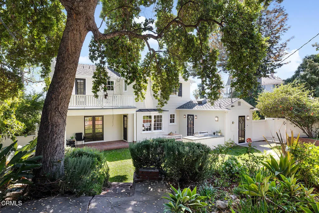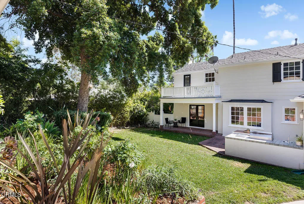 Lovingly maintained & thoughtfully updated, this classic 1941 Colonial Revival offers timeless architecture, gracious living spaces, & exceptional attention to detail in one of Eagle Rock’s most sought-after neighborhoods. Designed by noted architect W.W. Warren, the home captures the charm & craftsmanship of its era while incorporating modern updates that make everyday living effortless. A formal entry sets the tone, highlighted by a sweeping staircase. The sun-filled living room features hardwood floors, crown molding, a fireplace, and French doors to the back, creating an easy connection between indoor & outdoor living. Across the entry hall, the dining room flows directly into the kitchen, offering a layout that balances traditional character with modern functionality. Remodeled with a subtle Art Deco influence, the kitchen is both stylish and highly functional. Custom cabinetry, Marmoleum flooring, and a striking suite of appliances anchor the space, including a Thermador six-burner range with griddle, Thermador hood, Thermador refrigerator & freezer columns, a Scotsman nugget ice machine, & beverage fridge. Just outside, a patio with built-in outdoor kitchen extends the entertaining possibilities. Additional main-level spaces include a den with built-in bookshelves & window bench, a powder room, a mudroom with generous storage, and access to the basement laundry room. Upstairs, three bedrooms provide peaceful retreats, including a beautifully appointed primary suite with custom closets, a period-inspired bath, views across Eagle Rock, and a private balcony overlooking the yard. The other two bedrooms share a hall bath, also charmingly period-appropriate. Throughout the home, hardwood floors, Deco-inspired fixtures and finishes, and custom storage solutions reflect a thoughtful approach to preservation & design. Modern upgrades include central air & heat, updated plumbing & electrical systems, a bolted foundation, & a 50-year shingle roof. The backyard is private and fully fenced, offering both lawn and patio areas ideal for gatherings, quiet evenings, or weekend entertaining. The detached garage has a loft space for storage & there is also a space perfect for office or studio. This is a rare opportunity to own a beautifully preserved & carefully updated home in a premier Eagle Rock location. You’re just moments from the neighborhood’s beloved shops & restaurants along Colorado, offering the perfect blend of residential calm & vibrant community life.
