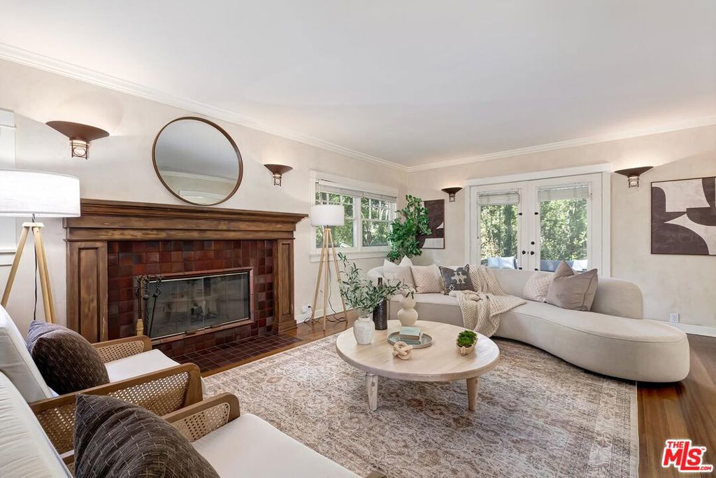 This beautiful craftsman cottage situated on a sprawling parklike lot at the base of Runyon Canyon features original architectural details and city views. Set at the back of a landscaped path, the home feels serenely private surrounded by nature. Enter into a gracious foyer off the welcoming front porch and into a formal living room anchored by a fireplace with french doors. The dining room flows directly into the well equipped kitchen with newer appliances and a breakfast area. An entertainer’s dream of a backyard with multiple areas for sitting and dining expands the living space and is surrounded by lush vegetation and hardscaping. The second floor features a large primary with a sitting area, a wonderful second bedroom and a spacious charming bathroom. The top floor has a third bedroom or an office, with a newer bathroom complete with walk-in shower, a rooftop deck with city views. A separate 2 car garage with direct street access, main floor powder room, laundry area and ample built-ins round out the highlights of this stunning property. Moments from the best restaurants and entertainment of Hollywood and West Hollywood, all while remaining uniquely tranquil make this home one worth running to.