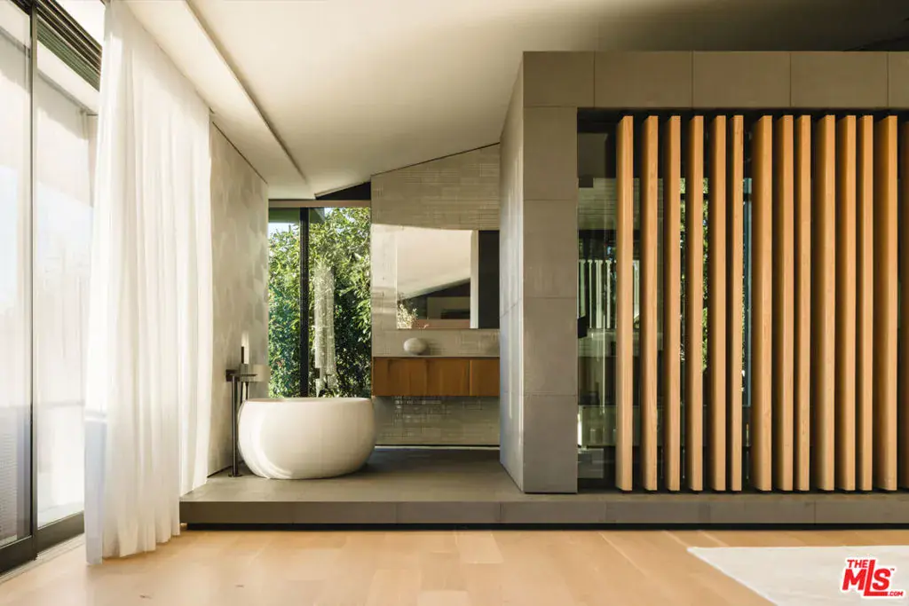 Step inside Horizon Estate, a masterclass in contemporary luxury, privacy, and architectural refinement. Designed with a seamless indoor outdoor philosophy, the residence is defined by clean lines, soaring volumes, and walls of glass that frame verdant canyon views while flooding the interiors with natural light. At the heart of the home, a breathtaking curved floating staircase serves as both functional art and architectural center piece, crowned by a cascading custom chandelier. The interiors unfold with a serene sophistication white oak wood floors, bespoke Italian porcelain tile finishes, and curated materials create an atmosphere of understated elegance. Living and entertaining spaces flow effortlessly with a top of the line kitchen and chef’s kitchen by Poliform and Gaggenau, a state of the art bar with custom Corian backdrop anchored by a dramatic glass-enclosed wine cellar and expansive lounges that open directly to the grounds. The home theater is a love letter to the artistry of sound and picture with an immersive experience as you host your screenings. A spa-inspired primary suite offers a private sanctuary, complete with two sculptural soaking tubs, refined wood detailing, ample walk-in closets and tranquil garden outlooks. Outdoors, the estate transforms into a private resort. A striking infinity-edge pool and spa appears to float above the lush landscape, offering breathtaking canyon views. Thoughtfully designed terraces provide the perfect setting for both intimate relaxation and grand-scale entertaining.Horizon Estate is not just a residence; it is a statement of lifestyle a rare Bel Air offering that blends cutting-edge design, warmth, and timeless sophistication in one of Los Angeles’ most prestigious enclaves.