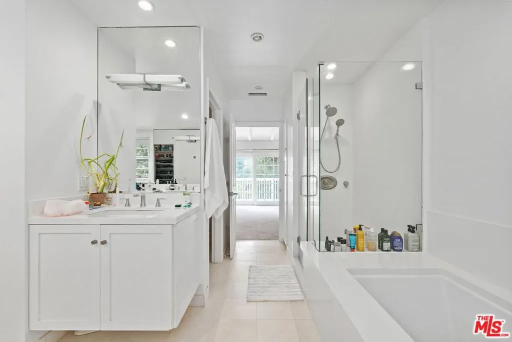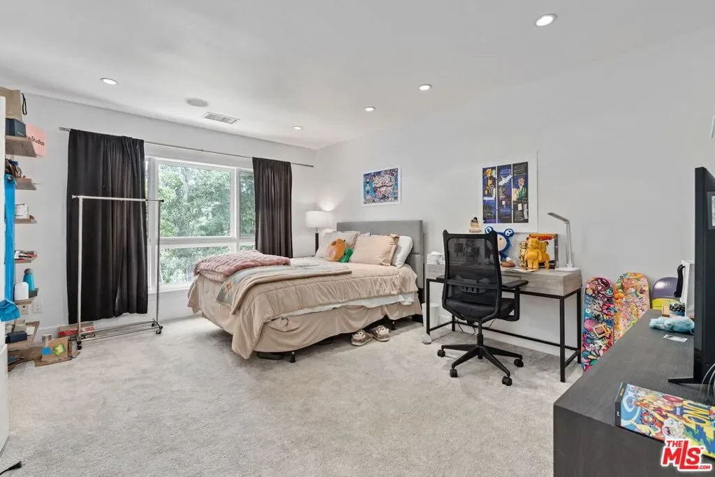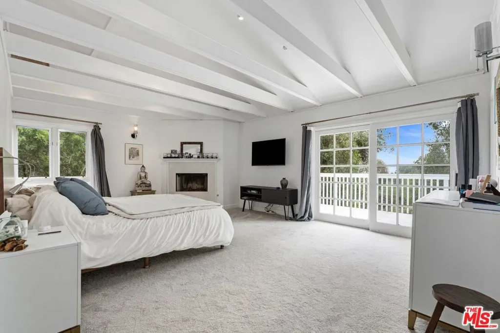 Beautifully remodeled home located on a private & quiet street, this peaceful property offers 4 bedrooms, 4 bath. The spacious primary suite boasts a fireplace, large walk in closet, gorgeous balcony with mountain views and peek a boo ocean view. The garage has been converted into an in home media room, great for entertaining.