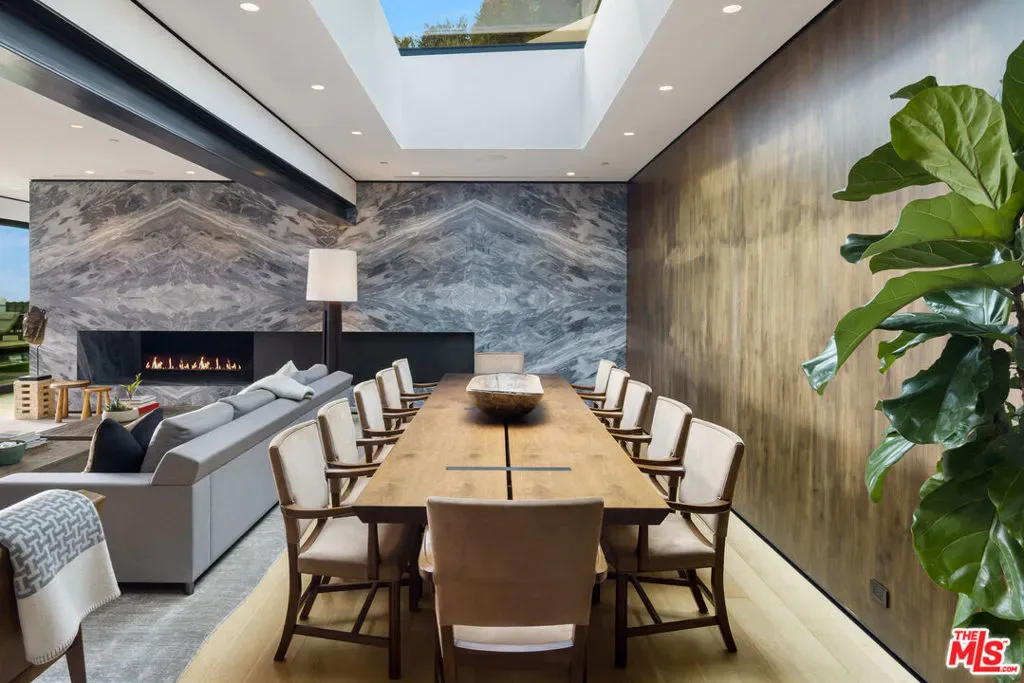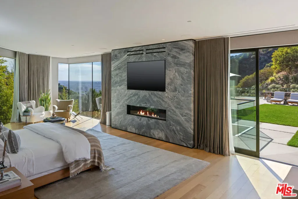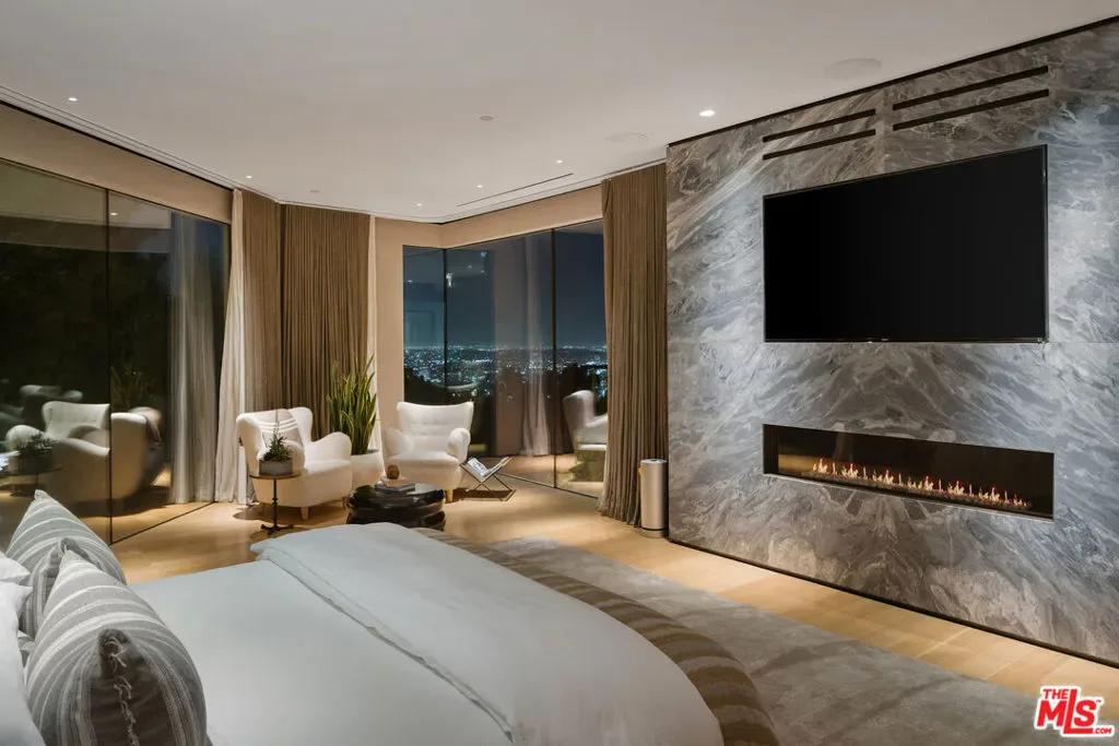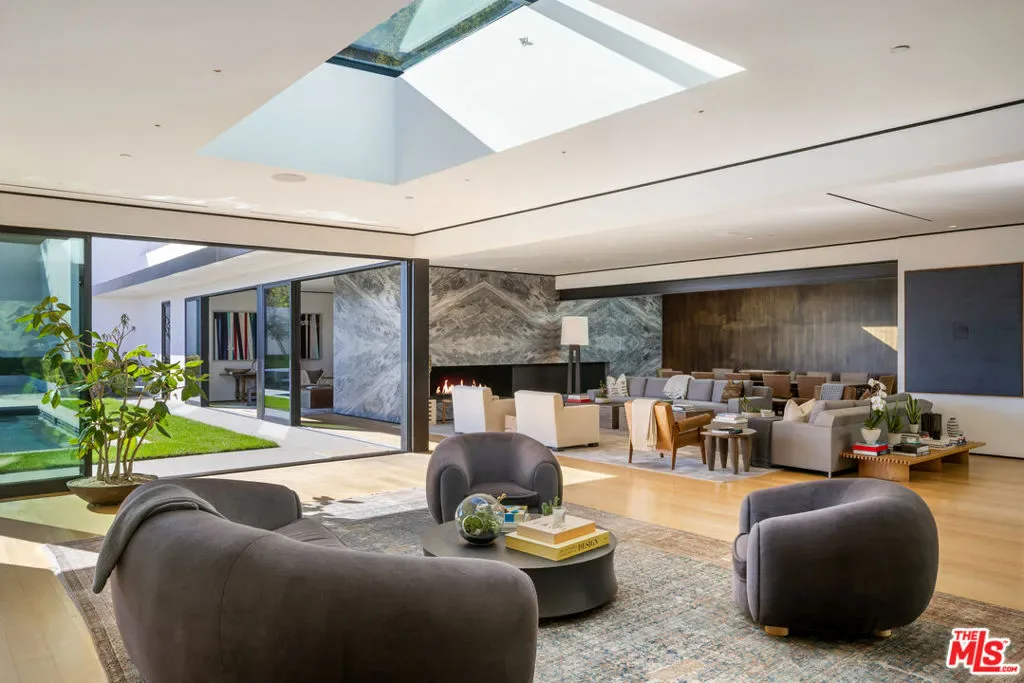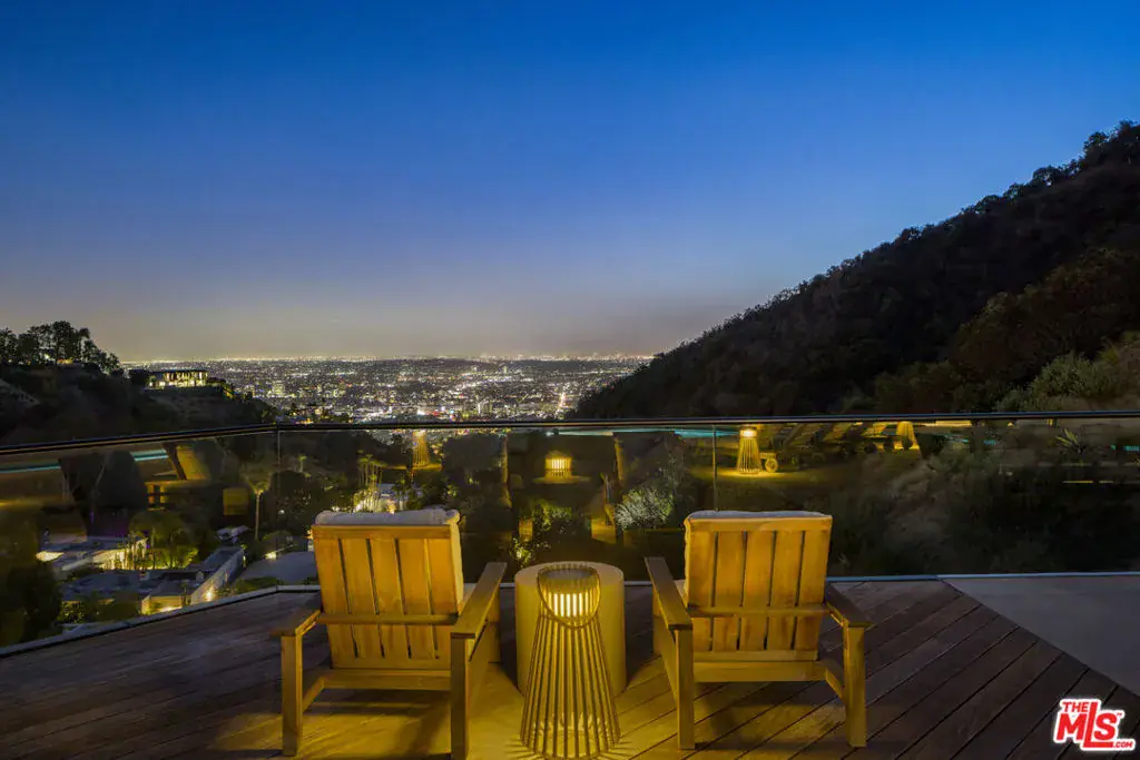 Tucked away in the prestigious Bird Streets, this private contemporary compound blends refined design with absolute privacy. Thoughtfully reimagined by the renowned AD100 firm Clements Design, the residence spans over 8,000 square feet on a generous 23,100-square-foot lot, offering a seamless indoor-outdoor lifestyle framed by sweeping city views through disappearing walls of glass.Light-filled living spaces include an airy great room with a striking fireplace and skylights that enhance the home’s serene atmosphere. The chef’s kitchen is equally impressive, outfitted with Miele appliances, an oversized island, WineMate-cooled wine wall, and a full butler’s pantry.The primary suite is a calming retreat with a fireplace, motorized shades, direct access to the yard, and a spa-inspired bath featuring a soaking tub, glass-enclosed steam shower, and a custom walk-in closet. Designed for entertaining, the outdoor areas include an 80-foot pool with a dramatic marble waterfall, spa, multiple lawns, and a tiered deck with a thriving vegetable garden by Heart Beet Gardening. The lower level features a private guest suite, gym with separate entry, home office, and a state-of-the-art theater with lounge and bar. Additional highlights include a library with floating walnut shelves, secondary lounge with built-in bar, Crestron smart home system, and a resurfaced garage. Moments from the Sunset Strip and Beverly Hills, this one-of-a-kind estate offers the ultimate blend of luxury, privacy, and access to the best of Los Angeles.