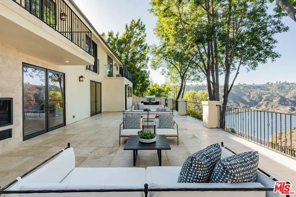 Stunning Warm Contemporary Home located in a peaceful and private setting on nearly half an acre in the heart of Bel Air. 1 of only 5 properties on Bel Air Road with unobstructed views of the Stone Canyon Reservoir. Fully rebuilt and reimagined throughout with exceptional design and luxurious attention to detail. A bright open floor plan showcases 6 bedrooms, 9 baths, a minimalist aesthetic with tons of natural light and incredible indoor/outdoor living spaces. Outdoors is a spectacular fully-private backyard with pool, spa, full outdoor kitchen and beautiful landscape design. The outdoor space provides hosting opportunities on a large scale while facing the dramatic water views. The custom gourmet kitchen features Thermador/La Cornue appliances, large center island with seating and walk-in pantry. There’s a wellness retreat with gym, cold plunge and outdoor barrel sauna overlooking the reservoir. Additional features include smart home systems, camera security, elevator, wine cellar and a gated motor court with 100 ft gravel driveway. A beautiful move-in ready modern home offering exceptional design, privacy and the feeling of a European lakeside villa.