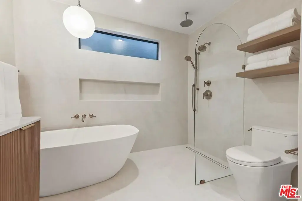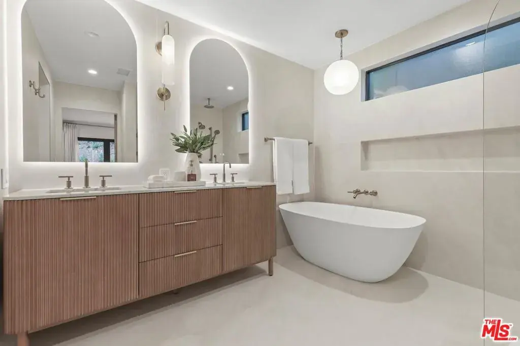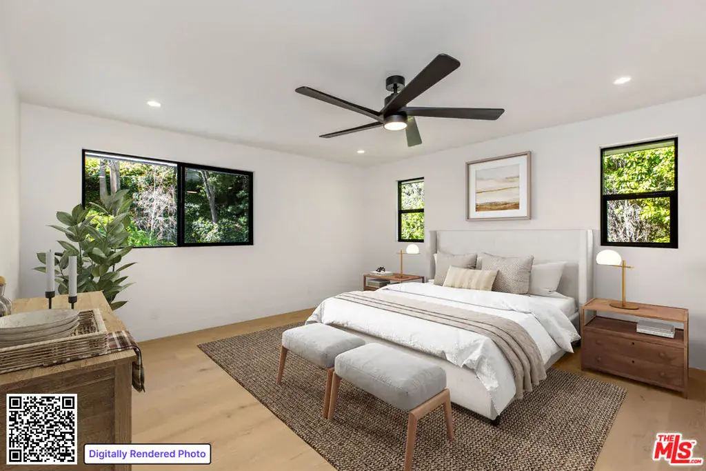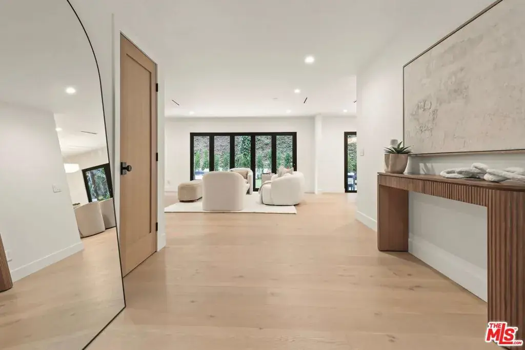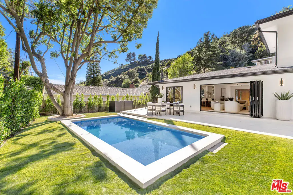 Welcome to 1902 Roscomare Road, an impeccably renovated property that blends sleek, modern design with a welcoming, family-oriented ambiance. The clean lines and warm wood accents of this hillside retreat deliver an abundance of curb appeal and offer an inviting, stylish environment that makes a striking first impression. Upon entering the home, you’ll discover open-concept living areas perfectly suited for family gatherings. The expansive space features neutral tones and is outfitted with wide-plank floors, recessed lighting, and premium fixtures throughout, demonstrating meticulous craftsmanship and attention to detail. The thoughtfully reimagined interior boasts five spacious bedrooms and four elegantly appointed bathrooms, which feature contemporary finishes, allowing each resident to enjoy their own stylish retreat. The tastefully remodeled gourmet kitchen is the heart of the home, offering ample space for entertaining and family get-togethers alike. Sleek cabinets, premium stainless steel appliances, and top-grade custom finishes blend seamlessly to provide a clean, elegant design aesthetic. A separate arched alcove adjoins the kitchen and features additional cabinet space, a wine fridge, and a countertop bar area, making this dynamic kitchen space both functional and ideal for hosting. Expansive windows and stacker glass doors seamlessly connect the indoor and outdoor environments. Retreat to the meticulously landscaped backyard, where you will be welcomed by a sparkling pool and lush hillside views that create a tranquil and comforting backdrop. The yard also features a variety of seating areas, so whether you’re enjoying a relaxing day with family and friends or simply soaking up the sun, this outdoor space is fully equipped to accommodate your needs. Located within the highly acclaimed Roscomare Road Elementary School District, the property is conveniently positioned in close proximity to Beverly Hills, Sunset Boulevard, and the 405 Freeway, and is just minutes from a wide array of amenities and eateries on the vibrant Westside. This residence is a perfect blend of elegance and comfort, offering a unique opportunity to experience the best of Bel Air living. Ready to welcome you, this home is truly a rare find in one of West Los Angeles’ most treasured neighborhoods.