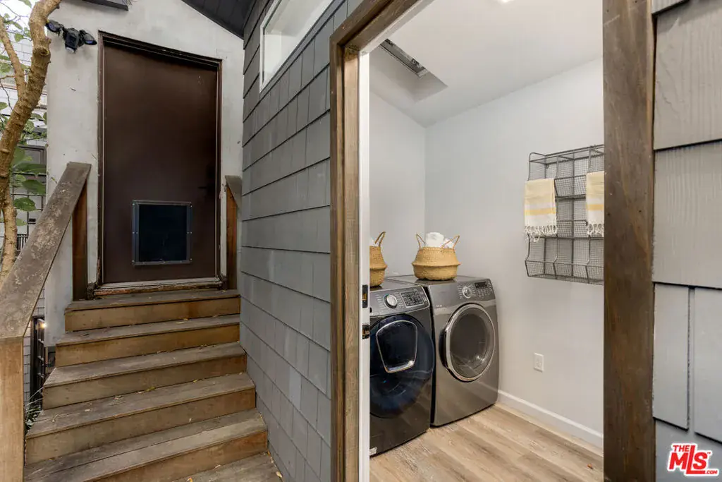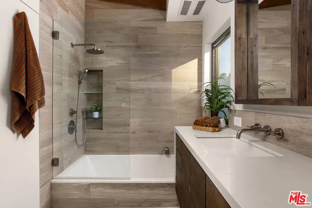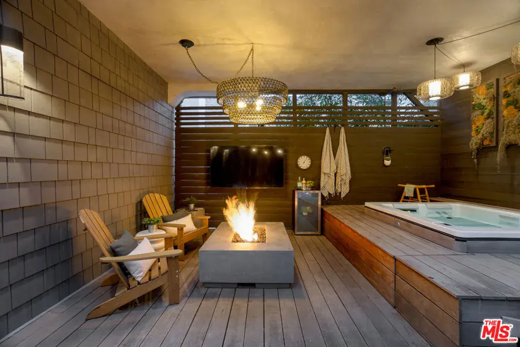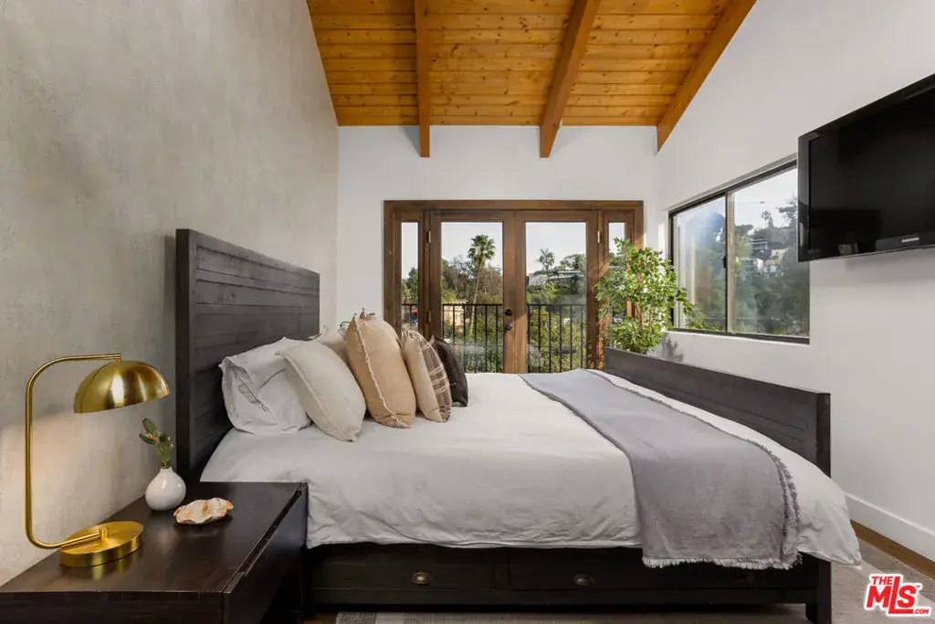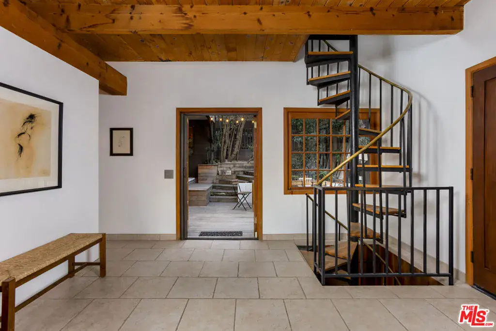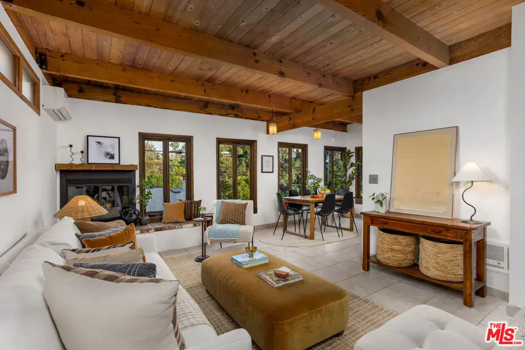 Welcome to 1905 Weepah Way, a serene retreat tucked away in Laurel Canyon. This contemporary Craftsman-style “treehouse” blends rustic warmth with modern updates, featuring renovated kitchen and baths, soaring lofted ceilings, and an abundance of natural light throughout. The open-concept living and dining area is anchored by a cozy fireplace and expansive windows that frame lush canyon views. The updated gourmet kitchen is equipped with high-end stainless steel appliances, generous cabinetry, and ample storage. A full modern bathroom completes the main living level. French doors open to a private, secluded outdoor oasis ideal for entertaining or relaxing, featuring multiple lounge areas, outdoor dining space, and a spa jacuzzi with outdoor shower surrounded by mature greenery. An additional upper patio offers space for gardening or quiet retreat. The upper level hosts three large bedrooms and a sleek full bathroom with double vanity and sunken soaking tub. The lower level includes a fully renovated full bathroom and a bonus bedroom with closet, ideal as a guest suite, office, or flexible living space. Additional highlights include owned, paid-off solar panels, a detached laundry room, a converted garage that has been semi sound-proofed perfect for music, creative work, or editing and placement within the highly sought-after Wonderland Avenue Elementary School district. A Must See!!