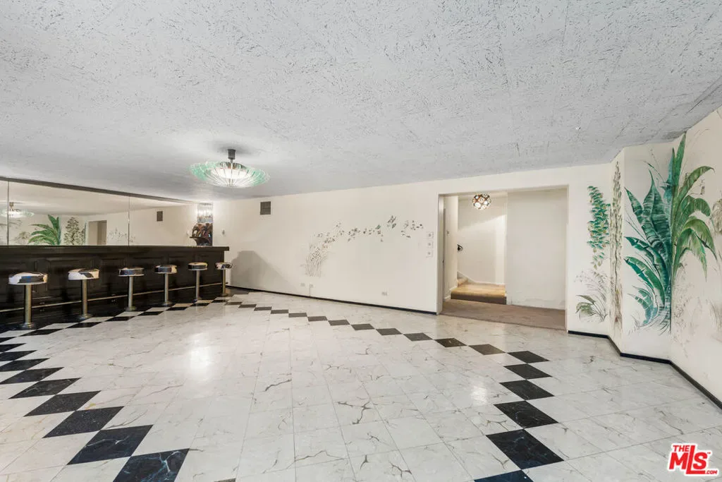 This magnificent Art Deco home is located in Hancock Park, one of the most exquisite neighborhoods in Los Angeles. It stands as a masterpiece of architectural design, capturing the elegance and opulence of the 1920’s and 1930’s. Architecturally known as the “Smith House”, the exterior showcases a symmetrical facade with clean lines, bold geometric shapes, and a striking combination of materials such as rich stucco and stained glass. As you step inside, you are greeted by a grand foyer adorned with luxurious oak flooring and a sweeping staircase that exudes sophistication. The interior of the house features artistic ceilings, large windows, and an abundance of natural light, creating a bright and airy atmosphere. The living room is a true reflection of the Art Deco style, with its sleek and streamlined furniture, geometric patterns, and rich color palette. The fireplace is a focal point, adorned with a decorative white marble mantel. Moving into the dining room, you will find an exquisite space for entertaining, complete with a dazzling chandelier, polished wood furniture, and intricate detailing on the walls. The kitchen is a custom-built St. Charles design. It combines vintage amenities with an Art Deco flair featuring chrome accents and highly purposeful, sleek cabinetry. The bedrooms in this Art Deco house are equally stunning, with plush carpets, luxurious fabrics, and stunning views of the surrounding landscape. The bathrooms are a blend of functionality and elegance. They feature vintage fixtures, mosaic tiles, and artfully designed vanities. In addition, you also have a stunning entertainment room with a drop-down movie screen and a 17′ full bar that is all stainless steel and is set for two bartenders. Outside, the house is surrounded by a meticulously landscaped garden and a charming outdoor seating area. The Art Deco influence extends to the exterior with ornate wrought iron accents, decorative motifs, and bold color choices. This historical Art Deco house is a true architectural gem, combining timeless elegance with modern comforts. It is a testament to the rich history and artistic vision of the Art Deco movement. It provides a unique and enchanting living experience with its iconic style and exclusivity. The house has been featured in a number of films and television shoots. For the first time in over 50 years, this spectacular piece of Art Deco is available for a lucky new owner!