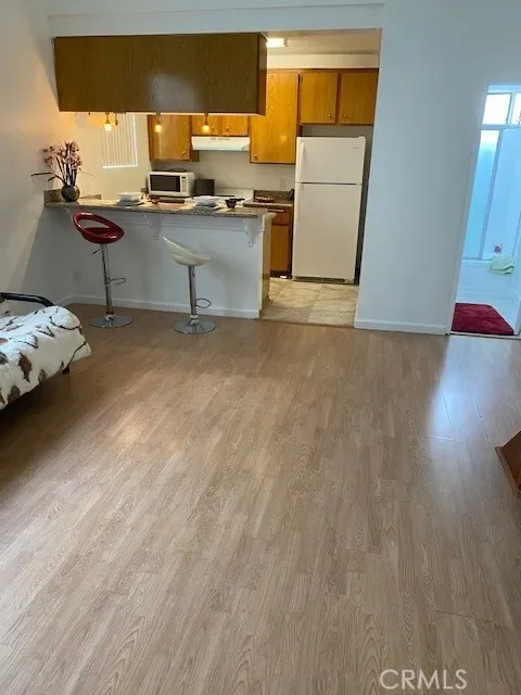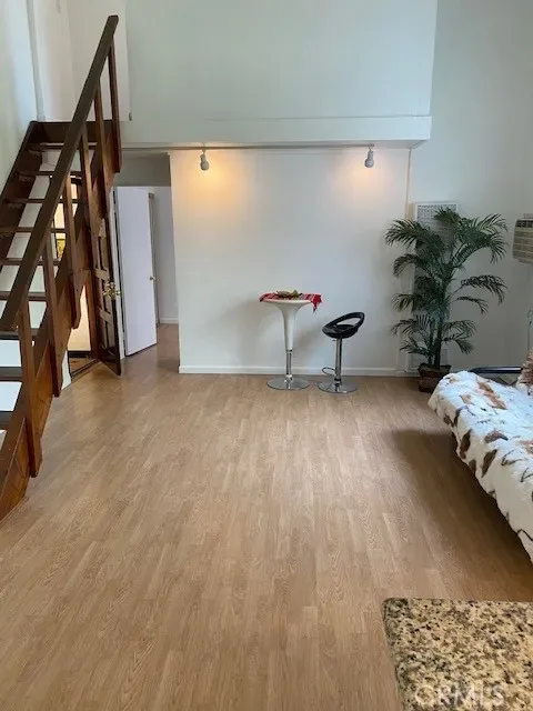 Step into a charming European/townhome style and custom designed unit that provides a flexible living space located in the heart of Hollywood. Perfect for young professionals who want both style and practicality. This 2-bedroom, 2-bathroom apartment unit offers an open concept with cathedral-high ceilings, laminate wood living area and in bedrooms upgraded countertops and the entirety of the unit enjoys lots of natural light. Inside the bedroom you have lot of space, and it comes with a custom-built closet already installed.