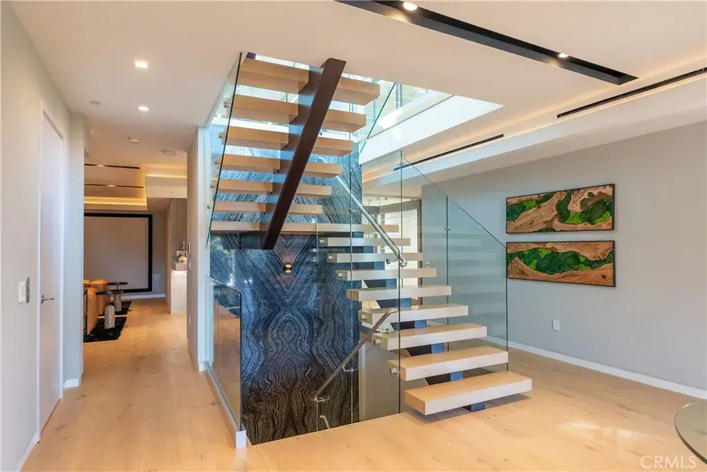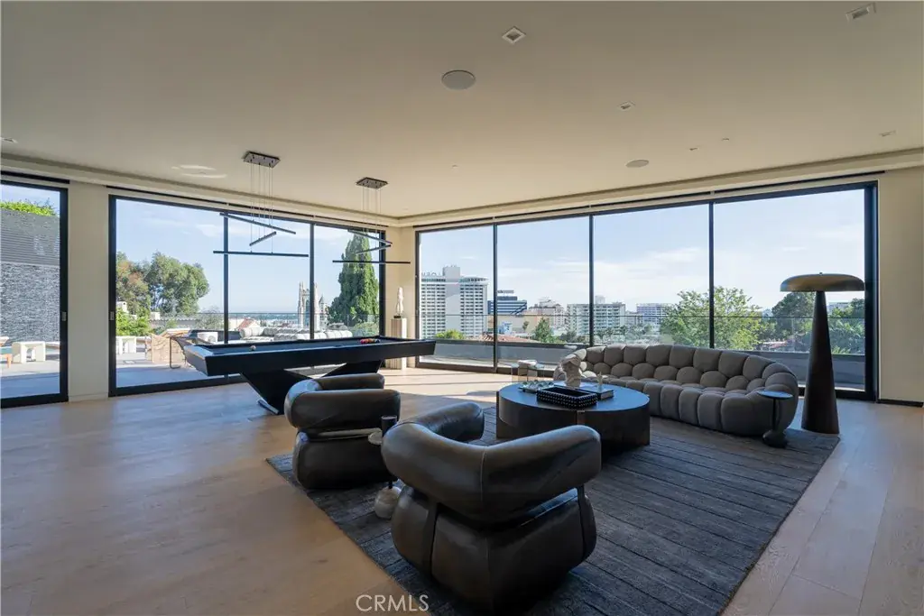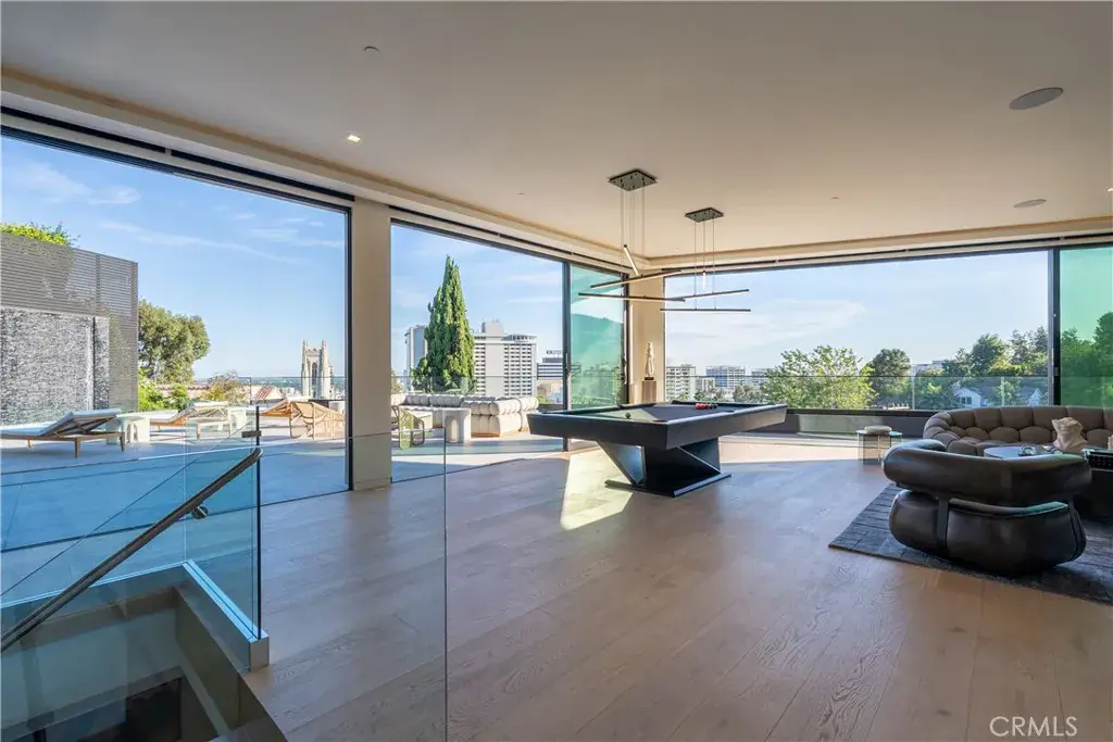Welcome to this Modern Luxury Estate in the prime Hollywood Hills! With the best views of the city, this exceptional residence blends cutting-edge design with high-end finishes, offering the ultimate luxury living and entertainment. Spanning multiple levels, the home features 6 generously sized bedrooms and 7 bathrooms, each with en-suite configurations and custom walk-in closets. The entry-level boasts three guest suites, a state-of-the-art movie theater, and a full bar, creating a perfect setting for entertaining. The main living area showcases floor-to-ceiling sliding doors, seamlessly connecting indoor and outdoor spaces. The chef’s kitchen includes a large island, walk-in pantry, and premium appliances, opening to a resort-style deck complete with an infinity pool, rockwall waterfall, oversized hot tub, built-in BBQ, and wet bar, all overlooking stunning views of Hollywood. The top level is dedicated to the primary suite, featuring panoramic city views, a custom walk-in closet, and a luxurious bath with a soaking tub positioned to overlook Los Angeles. The primary suite has a private patio tucked away in the back with a private staircase to the pool. There’s an additional en-suite bedroom, ideal for an office, also provides access to a private rooftop deck with unobstructed city views. On the lower level, you’ll find another en-suite bedroom perfect for a gym or guest quarters. Additional highlights include a smart home system, full-service elevator, built-in surround sound, full security system, automated blinds, a 4 car garage, and a privately gated entrance. This one-of-a-kind estate offers a rare opportunity to own a truly unique and masterfully crafted property in one of Los Angeles’ most sought-after neighborhoods! Here’s your chance to call it yours