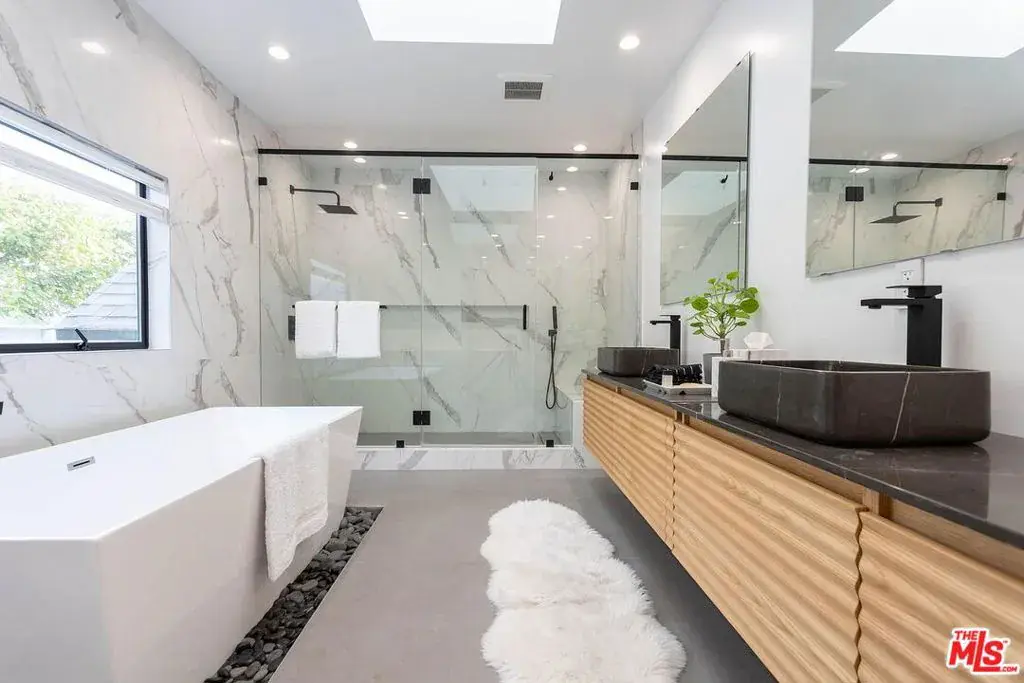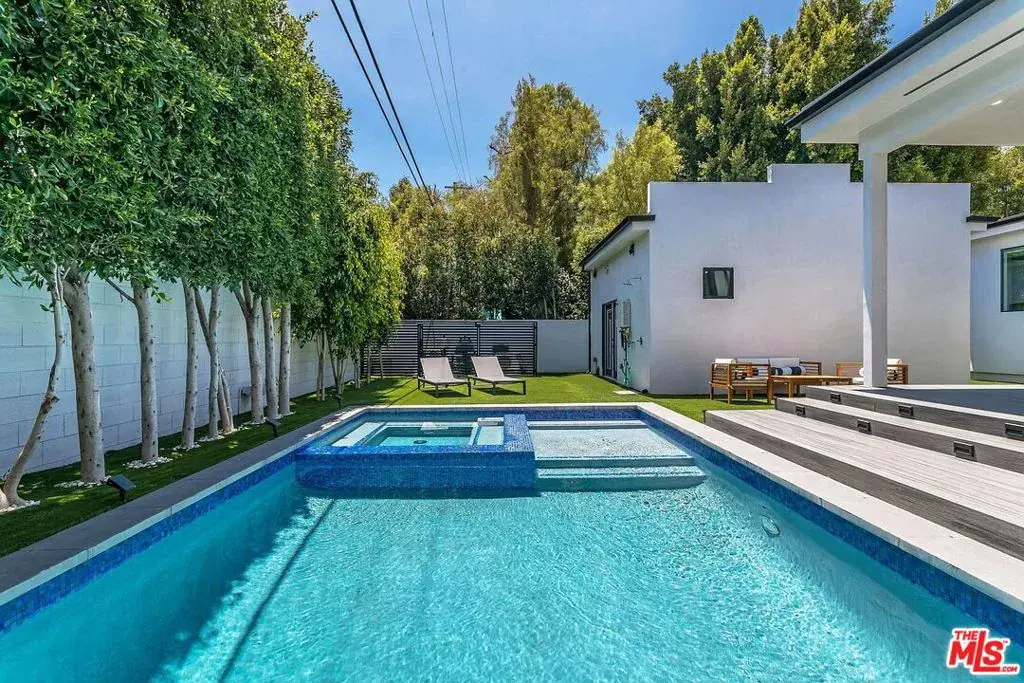 This stunning residence features a 4-bedroom, 3.5-bath main house along with a detached 1-bedroom, 1-bath ADU complete with its own kitchen, ideal for guests, extended family, or a private office setup. Step inside to discover high ceilings, expansive natural light, and an open-concept layout that seamlessly blends modern design with everyday functionality. The large kitchen island anchors the gourmet kitchen, offering ample space for cooking, entertaining, and gathering. In the primary suite, unwind in the deep soaking tub, creating your own spa-like escape. The living room boasts floor-to-ceiling sliding windows that fully retract, opening the home to a serene, private backyard oasis. Enjoy a heated pool, spa, grill, and curated outdoor spaces perfect for relaxation or hosting. This home is available for short-term or long-term stays and can be delivered furnished or unfurnished to accommodate your needs. Move into a centrally located space where luxury meets convenience.