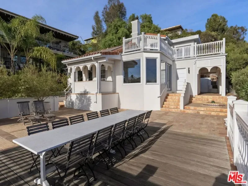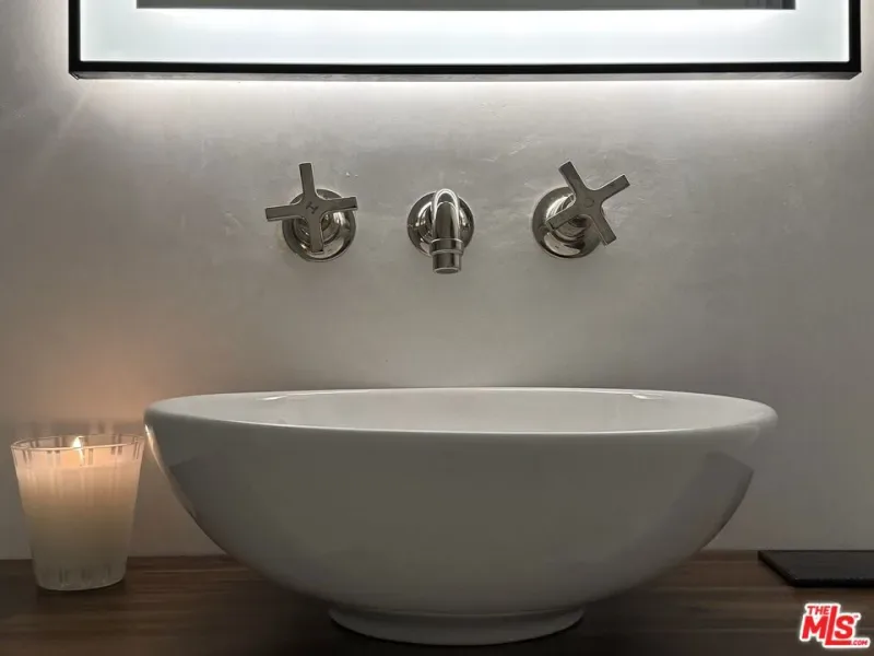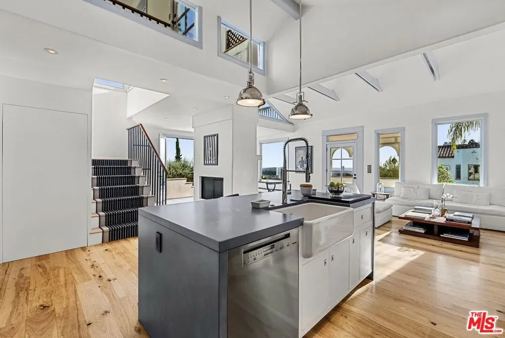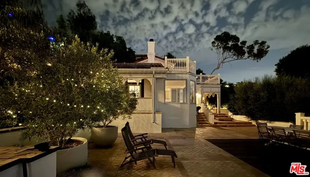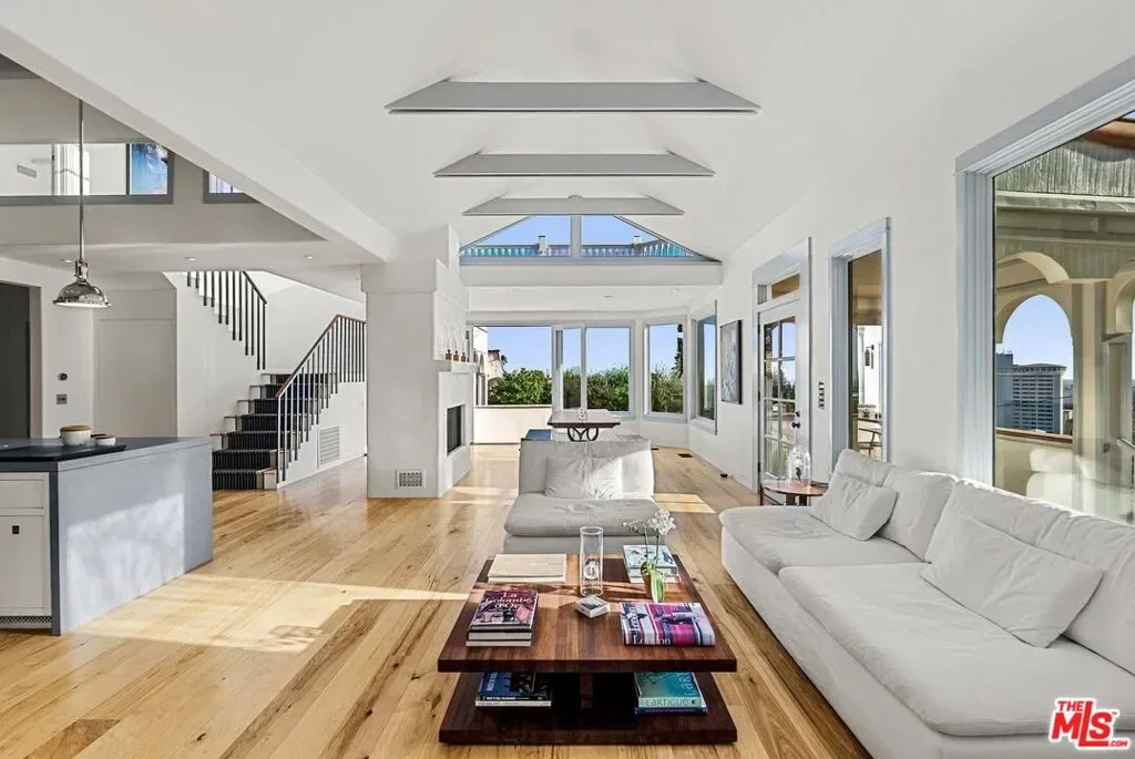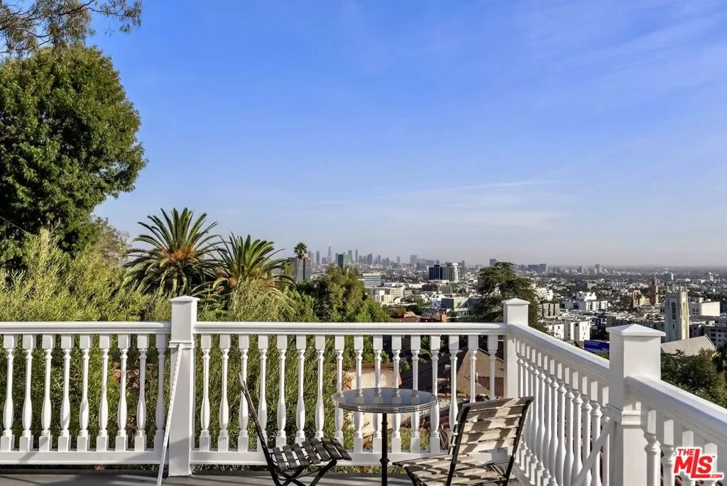 Mediterranean paradise with forever views in the Hollywood Hills. Sweeping vistas from downtown to Catalina make this private, gated retreat perfect for entertaining inside and out. Very large sky deck (~1200 SF) with pool shell in place (ready to finish), surrounded by mature orange, grapefruit, tangerine, lemon, plum, and olive trees all lush and heavy with fruit. In the afternoons, fresh air and ocean breezes waft through the home, renovated top to bottom with the finest materials (hand finished plaster, hickory hardwood floors and solid walnut shelves), finishes (polished nickel fixtures and light switches from Forbes and Lomax) and appliances (stainless steel Wolf, Sub-Zero, and Miele). Cathedral ceilings in open plan kitchen / living room / dining room with showcase island fireplace. Stunning large master suite with fireplace and private upper deck. Large basement with laundry area and ample built-in storage (570 SF additional to listed square footage). Super close to the best of Hollywood and West Hollywood, but you’ll feel like you are floating above it all. All new kitchen and pantry (including Sub Zero refrigerator, Wolf range and Miele dishwasher) with custom made steel and glass cabinets, and honed cast cement island countertops. Three all-new bathrooms with Waterworks, Lefroy Brooks and Agape fixtures. New French double doors, HVAC system, flooring (hardwood, tile and cement), energy-saving Comfort DimLED lighting (inside and out), paint (inside and out), and exterior irrigation system on timer. New solar electrical system, including two car chargers; this home’s electrical bill has generally averaged $18/month (yes, you read that correctly). New intercom / front gate security camera system, water heater, water softener and filtration system. Significant improvements to the electrical system, two fireplaces, interior stairwell and upper deck. Substantial landscape enhancements and repairs to roof (with 20-year guarantee).