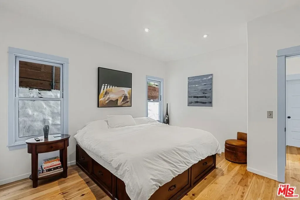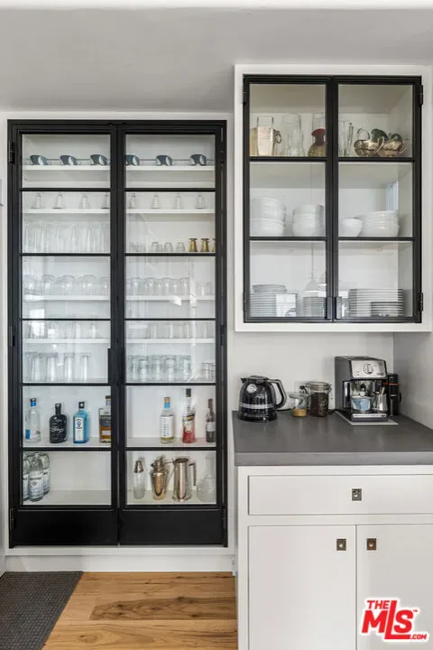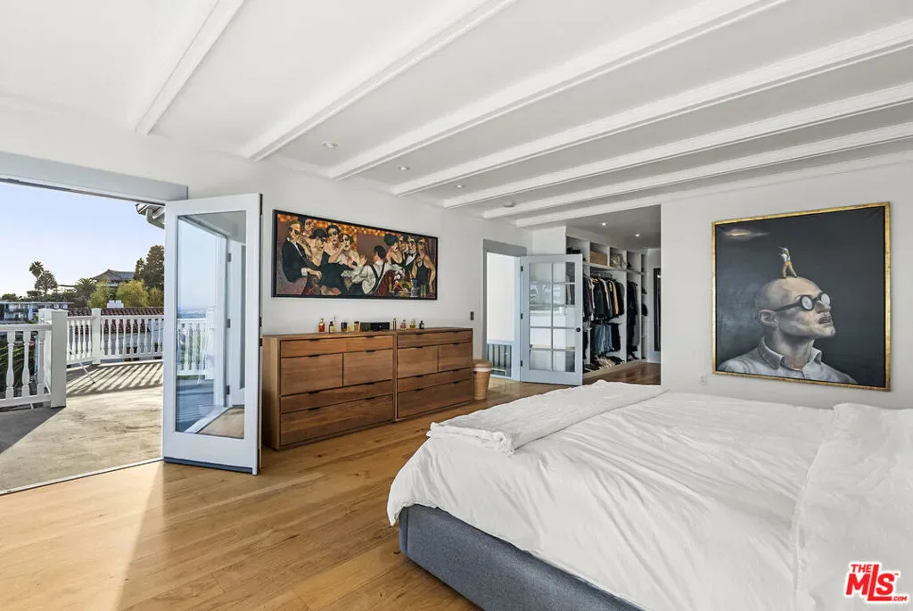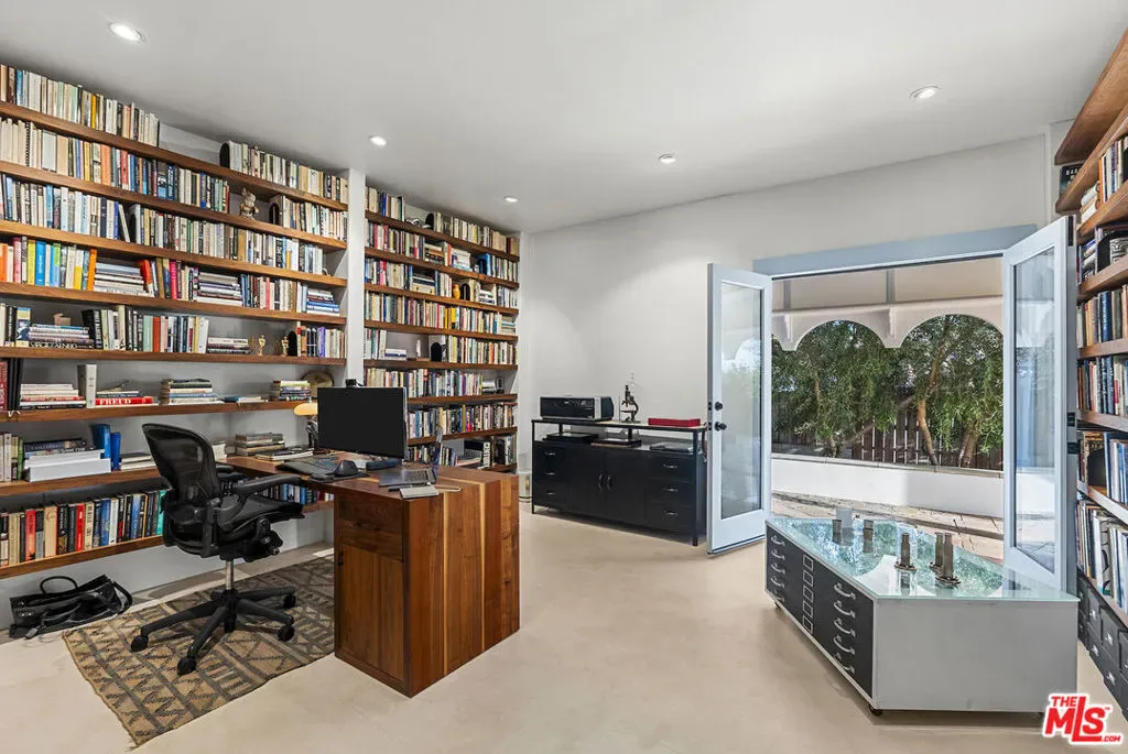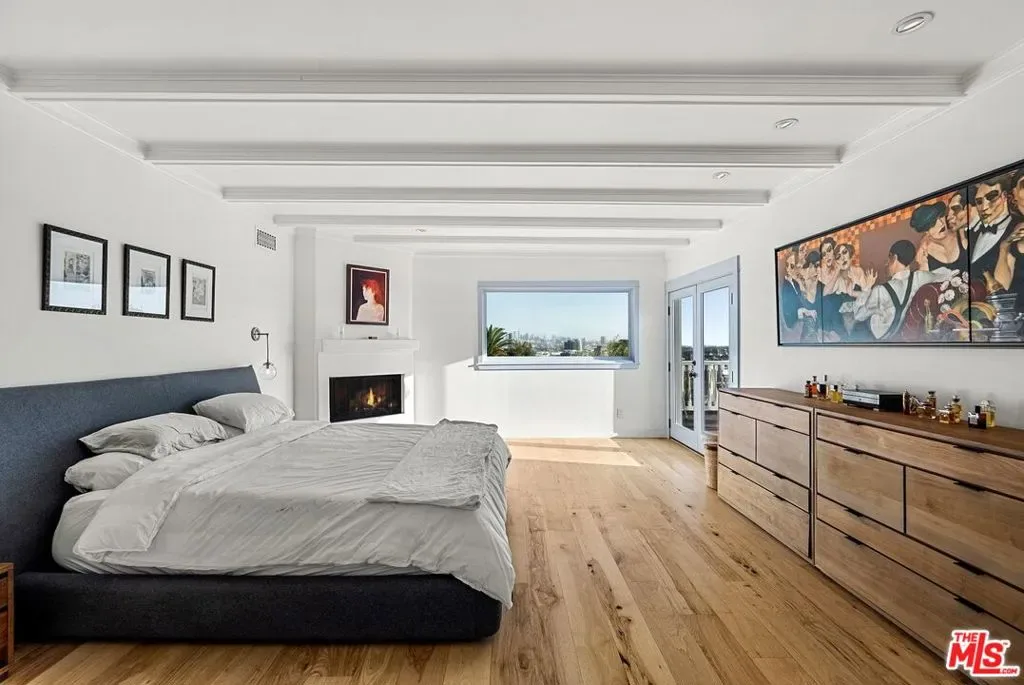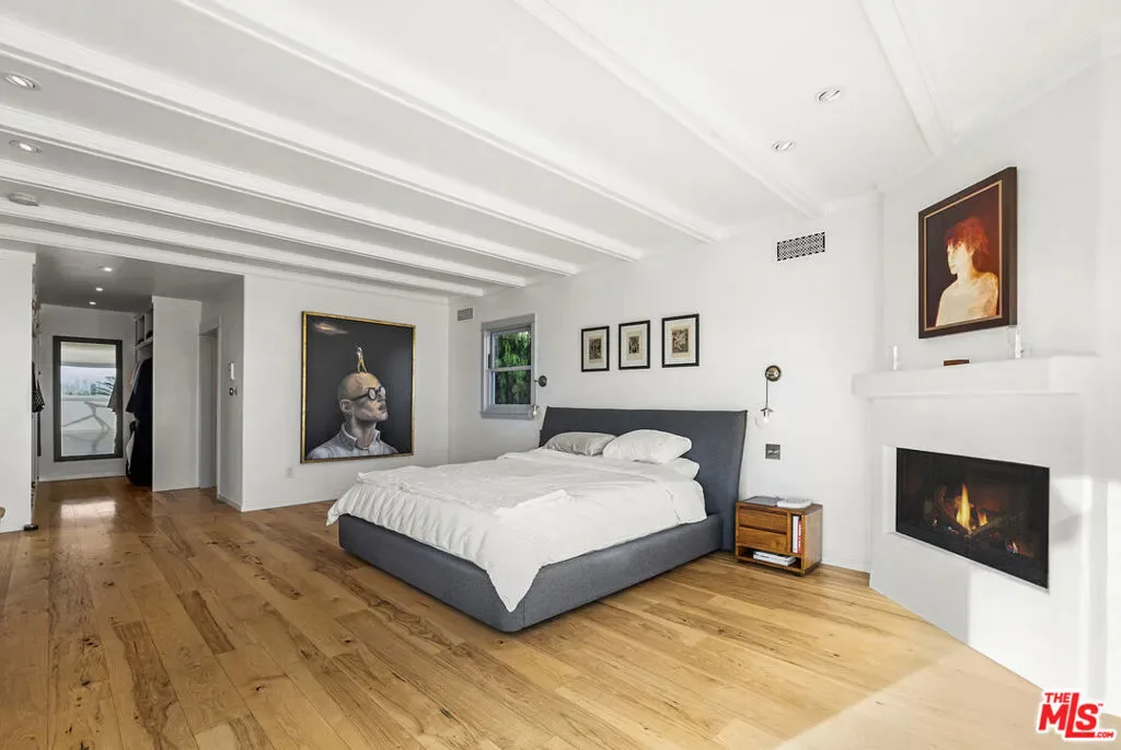Mediterranean paradise with forever views in the Hollywood Hills. Sweeping vistas from downtown to Catalina make this private, gated retreat perfect for entertaining inside and out. Very large sky deck (~1200 SF) with pool shell in place (ready to finish), surrounded by mature orange, grapefruit, tangerine, lemon, plum, and olive trees all lush and heavy with fruit. In the afternoons, fresh air and ocean breezes waft through the home, renovated top to bottom with the finest materials (hand finished plaster, hickory hardwood floors and solid walnut shelves), finishes (polished nickel fixtures and light switches from Forbes and Lomax) and appliances (stainless steel Wolf, Sub-Zero, and Miele). Cathedral ceilings in open plan kitchen / living room / dining room with showcase island fireplace. Stunning large master suite with fireplace and private upper deck. Large basement with laundry area and ample built-in storage (570 SF additional to listed square footage). Super close to the best of Hollywood and West Hollywood, but you’ll feel like you are floating above it all. All new kitchen and pantry (including Sub Zero refrigerator, Wolf range and Miele dishwasher) with custom made steel and glass cabinets, and honed cast cement island countertops. Three all-new bathrooms with Waterworks, Lefroy Brooks and Agape fixtures. New French double doors, HVAC system, flooring (hardwood, tile and cement), energy-saving Comfort DimLED lighting (inside and out), paint (inside and out), and exterior irrigation system on timer. New solar electrical system, including two car chargers; this home’s electrical bill has generally averaged $18/month (yes, you read that correctly). New intercom / front gate security camera system, water heater, water softener and filtration system. Significant improvements to the electrical system, two fireplaces, interior stairwell and upper deck. Substantial landscape enhancements and repairs to roof (with 20-year guarantee).