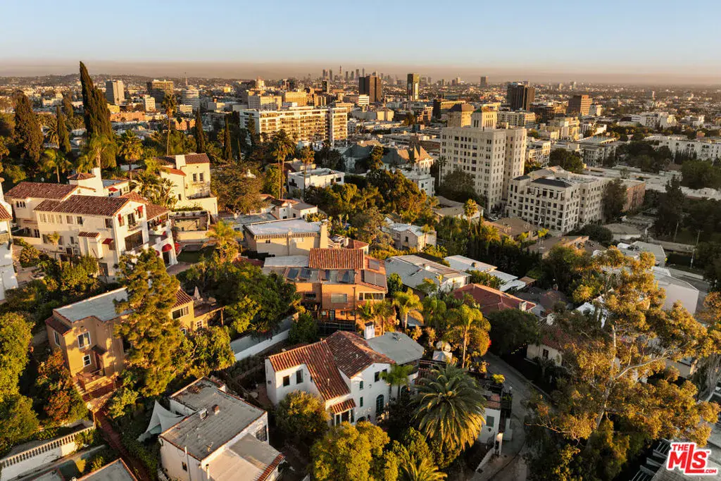 Perched in the heart of Whitley Heights, this beautifully preserved, fully furnished, Spanish Revival estate blends timeless 1920s charm with modern sophistication. Enjoy sweeping canyon and city views from nearly every room – from sunrise to sunset. The light-filled main residence offers three bedrooms and three bathrooms, highlighted by a dramatic living room with soaring arched windows and a cozy sunroom featuring exposed wood-beam ceilings. French doors open to a spacious deck, perfect for outdoor dining and entertaining under the stars. Rich in character, the home showcases exquisite original details, including wrought ironwork, stained glass accents, colorful Spanish tiles, and handcrafted wood built-ins. The gourmet kitchen has been updated with high-end stainless steel appliances, including a Wolf range, and offers extensive cabinetry. A detached guest house mirrors the main home’s vintage charm and provides flexible use – ideal as a guest suite or private office. The property also features multiple outdoor spaces for al fresco living, including manicured front and back yards, two patios, a view deck, and a balcony. Additional amenities include a one-car garage and on-site parking for two more vehicles. A private stairway offers direct access to Hollywood & Highland, the Hollywood Bowl, and other iconic attractions. A rare opportunity to experience a piece of Hollywood history, with unmatched views and exceptional indoor-outdoor living.