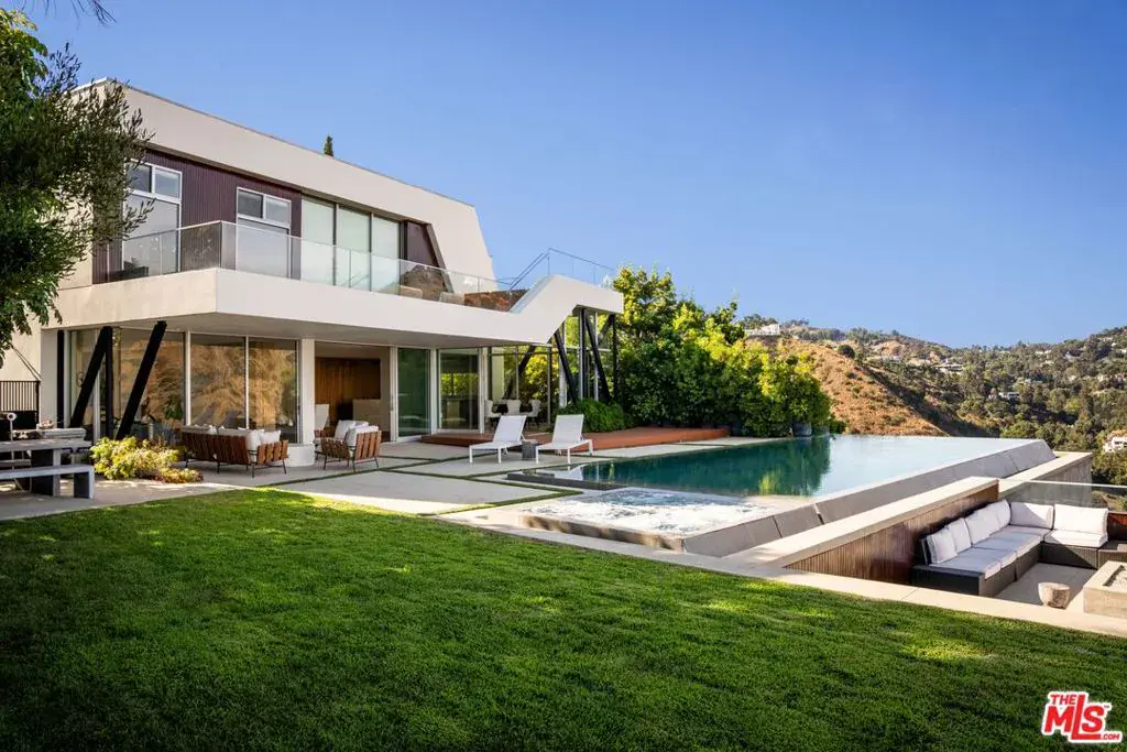 Behind gates on a rare flat lot in Mount Olympus, this private retreat captures unobstructed panoramic views that stretch from downtown Los Angeles to the ocean. A grand motor court welcomes you to a nearly 6,200 SF residence designed for elevated living and effortless entertaining. A soaring two-story glass conservatory, expansive living and dining rooms, and an open-concept kitchen with sliding glass doors invite seamless indoor-outdoor living while overlooking the skyline. The backyard is one of the few truly flat lots in the hills, featuring an infinity edge pool, spa, fire pit lounge, multiple patios, and a grassy lawn, all set against a world-class backdrop. The primary suite opens to its own private terrace with breathtaking views and includes a sitting area, spa-inspired bath, and custom walk-in closet. Three additional bedrooms and five bathrooms complete the spacious layout. Perfectly positioned above the legendary Sunset Strip and moments from West Hollywood, Beverly Hills, and Hollywood, this is a rare chance to own a private retreat that combines scale, privacy, and one of the most iconic views in Los Angeles. A lifestyle reserved for the few.