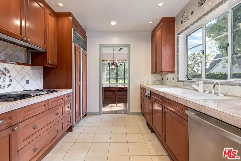 Enter through a covered gate to a storybook Tudor home on one of the most coveted streets in Westwood Hills. This unique rental offering features a stately living room with decorative fireplace, peg and groove wood floors, wood beams and leaded windows that create an authentic period experience. Formal dining room. Lovely breakfast room with built ins adjacent to kitchen. Laundry area, housekeeper’s room with 3/4 bath. A distinguished executive wood-paneled office and powder room. There is also a generously-sized lower level multi-purpose room with built-ins and full bath directly off the living room which could be used as a den or a bedroom. Upstairs find a romantic primary suite and second room with built-ins and 1/2 bath, previously used as a second home office, but which would also work well as a nursery. Gated driveway and garage. There is a large flagstone patio in the rear of the home, which is surrounded by a grassy flat yard enclosed with a beautiful stone fence and landscaped with mature trees, plants and colorful flowers. Close to both UCLA and the Getty Museum with quick access to the 405, this is a wonderful location to call home.