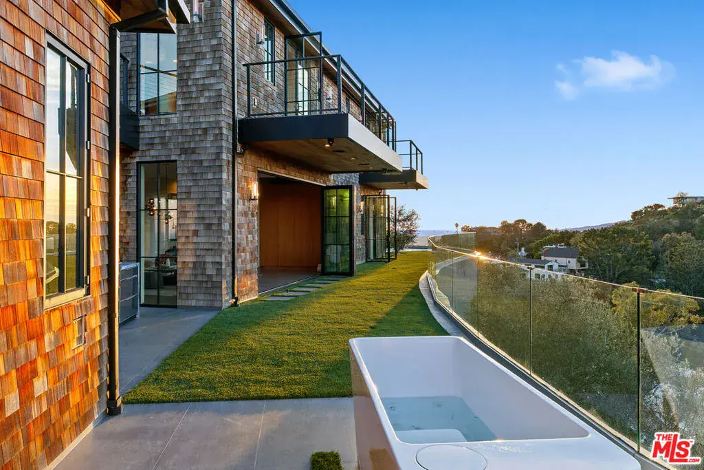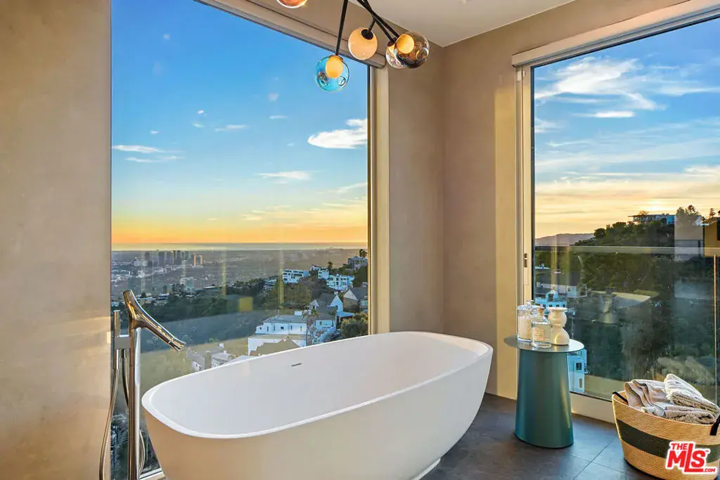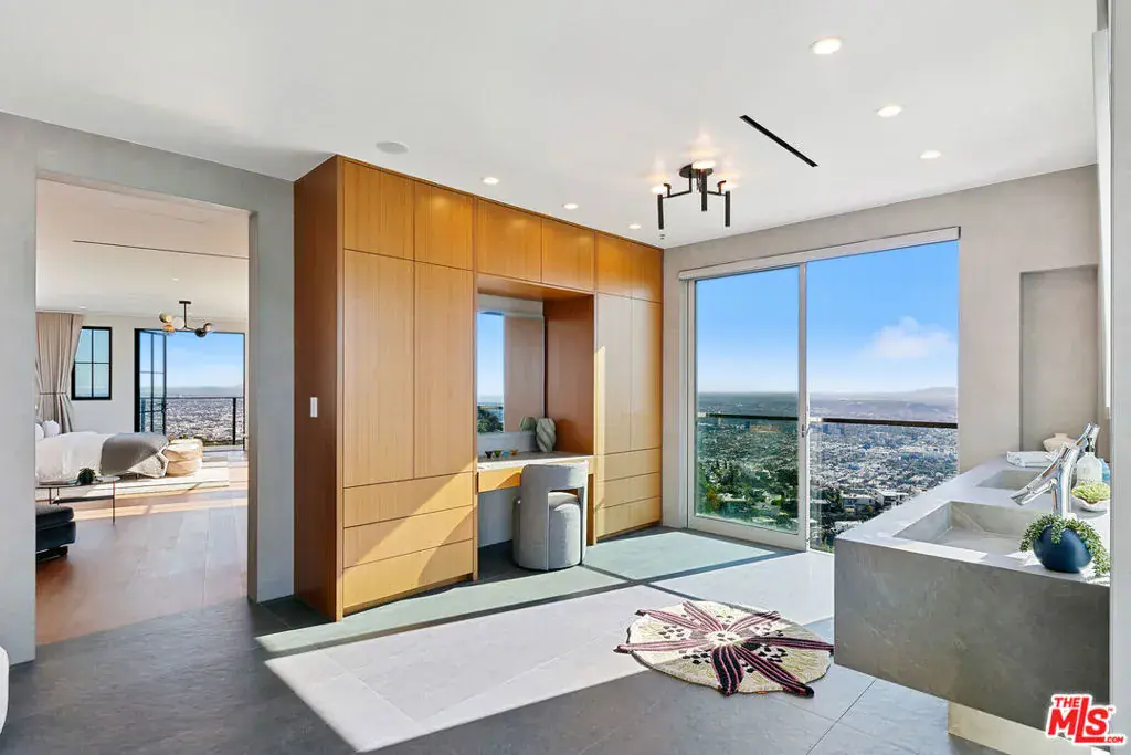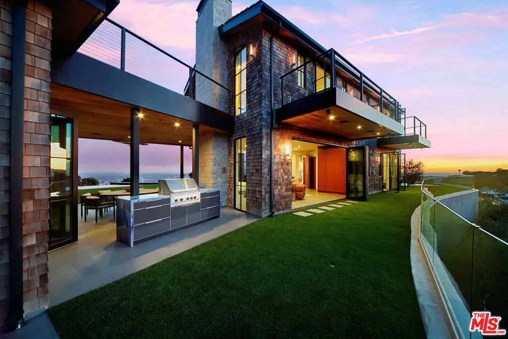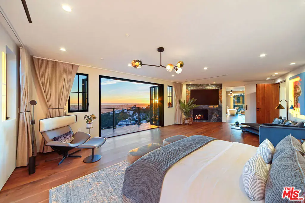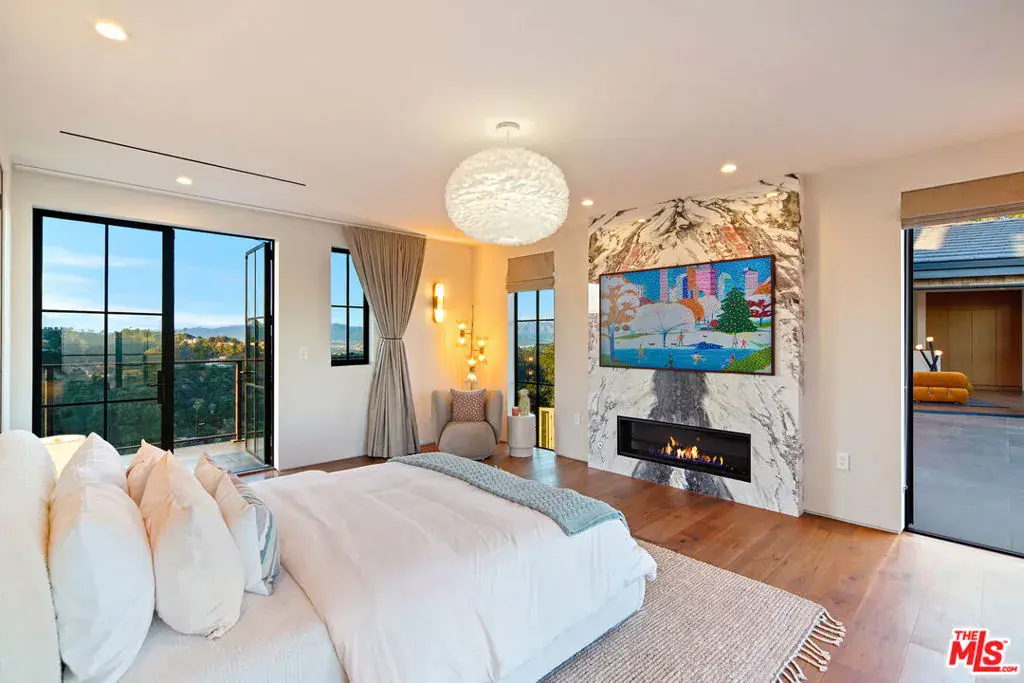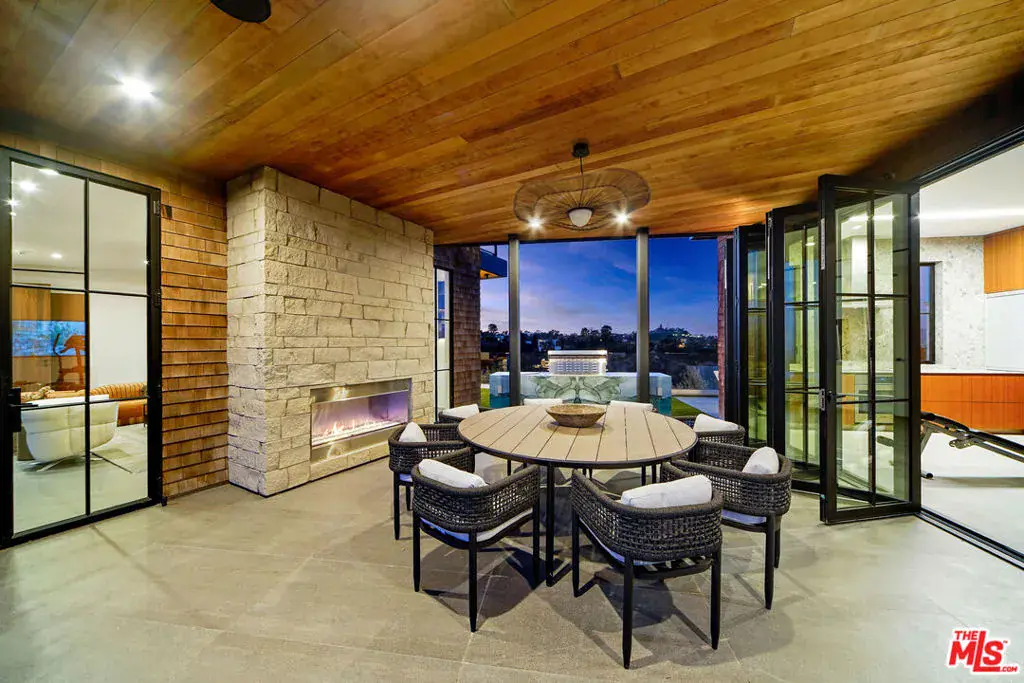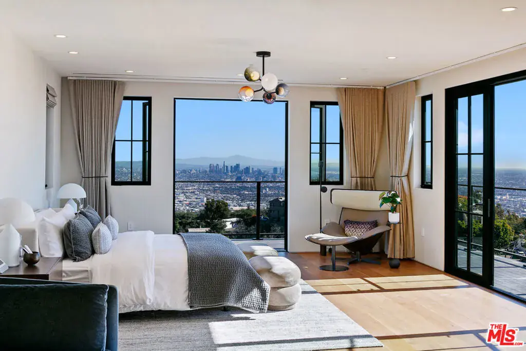 Welcome to The Apex. Perched above the city, this truly one of a kind estate is a statement of vision and refined luxury. Furnished and designed to impress at every turn, the approximately 7,500 square foot compound commands sweeping, unobstructed 360 degree views of the city lights, ocean horizon, and serene canyon vistas creating a constant connection to the landscape and a setting that feels cinematic, private and endlessly inspiring.The main residence features four bedrooms and five baths, where architecture and artistry converge. Custom finishes, museum quality lighting and a thoughtfully curated collection of designer furnishings create interiors that feel elevated, confident and effortlessly livable. Multiple fireplaces anchor the living and outdoor spaces, while expansive walls of glass dissolve the boundary between indoors and out. The living room seamlessly converts into an intimate cinematic experience with a concealed drop down theater, while an elegant yet sultry den opens directly to the outdoors, creating a natural flow for entertaining and everyday living. The primary suite with fireplace and balcony is a true sanctuary highlighted by an all-glass bathroom suite bathed in natural light. The shower is like a fine painting come to life, immersive and sculptural, surrounded by sky, horizon and shifting light. Each additional ensuite bedroom is generously proportioned, offering privacy, impeccable design and endless views.A separate guest house enhances the estate’s versatility and appeal. Designed across two levels, each with its own kitchen and bath, it is currently configured as a gym and lounge, yet can easily serve as additional bedrooms. Ideal for extended guests, multigenerational living, staff accommodations or private entertaining, it maintains complete independence from the main residence.The outdoor experience rivals that of a world class resort, including waterfall entry leading to a rare flat grassy yard, an exceptional find in the hills, especially when paired with panoramic views and privacy. Beyond the lawn, the property unfolds into multiple outdoor living environments including a striking pool and spa, cold plunge, outdoor fireplace, fire pit, BBQ area, wraparound balconies and sexy roof top lounge with fireplace. Every space is designed to capture the scenery as it transitions beautifully from sunrise to glowing city lights at night. A private gated driveway with parking for up to 10 vehicles and garage with elevator to main level further underscores the rarity of this offering. Finding a hillside estate with this level of flat usable land, parking and unobstructed views is extraordinarily uncommon. This is not simply a home, but an architectural experience designed for a discerning luxury clientele seeking something iconic, bold and impossible to replicate.