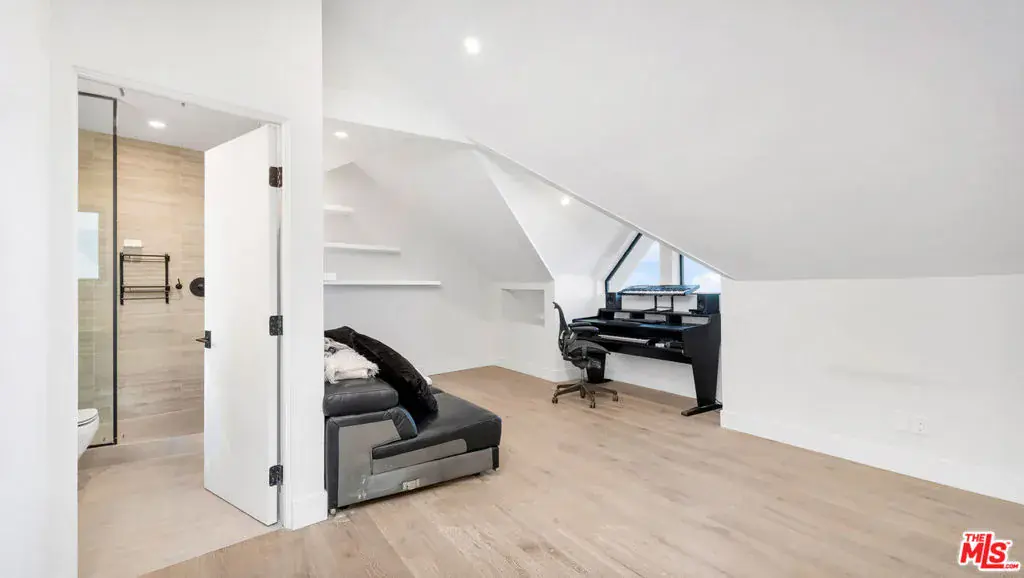 Experience sweeping jetliner views from nearly every vantage point in this recently renovated contemporary residence tucked into the Hollywood Hills. The main level showcases a grand-scale living room, a generously proportioned primary suite with five-star, hotel-quality finishes, and a chef’s kitchen designed for both form and function. Framed by dual Fleetwood sliding doors, the expansive deck seamlessly extends the living space outdoors. The kitchen is outfitted with Miele and Gaggenau appliances, a built-in espresso machine, a striking 10-foot island, and abundant storage, all overlooking the living area and breathtaking city vistas.The lower level offers two spacious bedrooms and a well-appointed bath with a walk-in shower, both opening onto a full-length deck. One bedroom is currently curated as a serene spa and meditation retreat, complete with dual Osaki Platinum massage chairs. Above, the top floor features an airy loft with commanding views and a fourth ensuite bedroom ideal for guests, an office, or creative studio. Throughout the home, Hue remote color-changing lighting highlights soaring ceilings and crisp architectural lines. Situated in the highly sought-after Wonderland School District, this Laurel Canyon stunner awaits its newest resident.