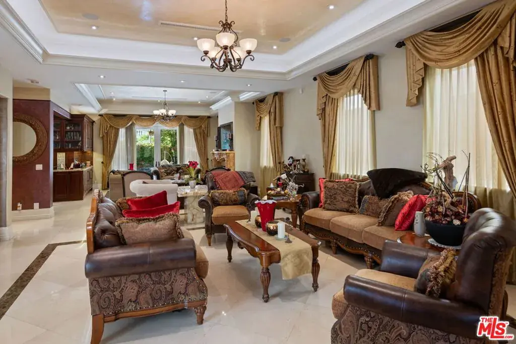 Furnished spacious 6,000+sf 6 bed/7.5 bath Mediterranean custom home with beautiful open floor plan. Prime mid-block location with gated front and auto-gated flag-stone finished driveway and walkway. Enter large living room opening to both dining room and back facing family room with fireplace and French doors to covered patio, tiled yard area and entertainer’s outdoor covered kitchen with BBQ and bar area. Double sized chef’s kitchen with center island, 2 sinks, all top-of-the-line stainless steel appliances including Wolf range/double oven, wine fridge, built-in oversized refrigerator/freezer, butler’s pantry with warming drawer and microwave. Breakfast area overlooking backyard with patio access. stairway to 2nd story is filled with an abundance of natural light. 4 spacious bedrooms upstairs all with ensuite updated marble and tile-finished bathrooms, front facing bedrooms with balconies and Century City views. Primary suite with fireplace, french doors to balcony with treetop and sunset views and large custom closet complete with island of dresser built-ins. Primary bathroom with separate spa tub and steam shower, dual basins. Lower level of home with large open game room/den including projector tv and 2 additional bedrooms with ensuite bathrooms and powder room. Additional features include marble and hardwood flooring, Venetian plaster walls, wired sound, 4 zoned ac/heat, solar panels, alarm system, laundry room with storage on 2nd story level. Beautifully maintained. Prime location close to Westfield Century City Mall, UCLA and Westwood Village and Beverly Hills. Westwood Charter School. Available beginning