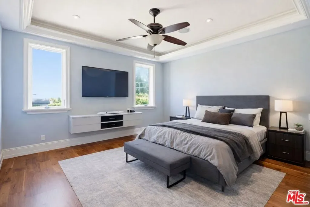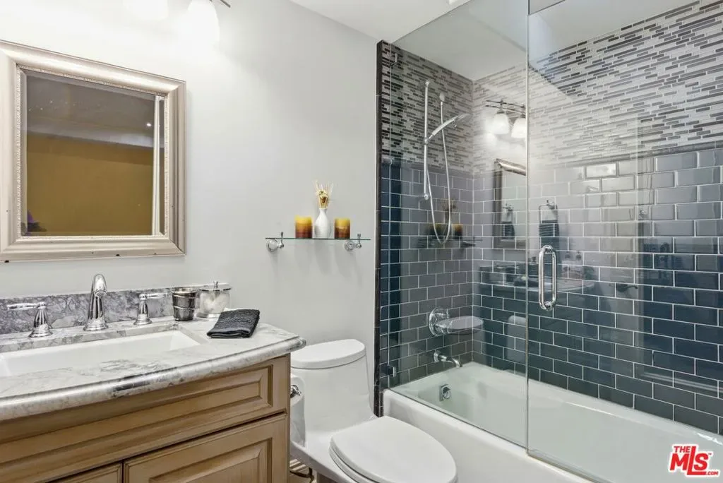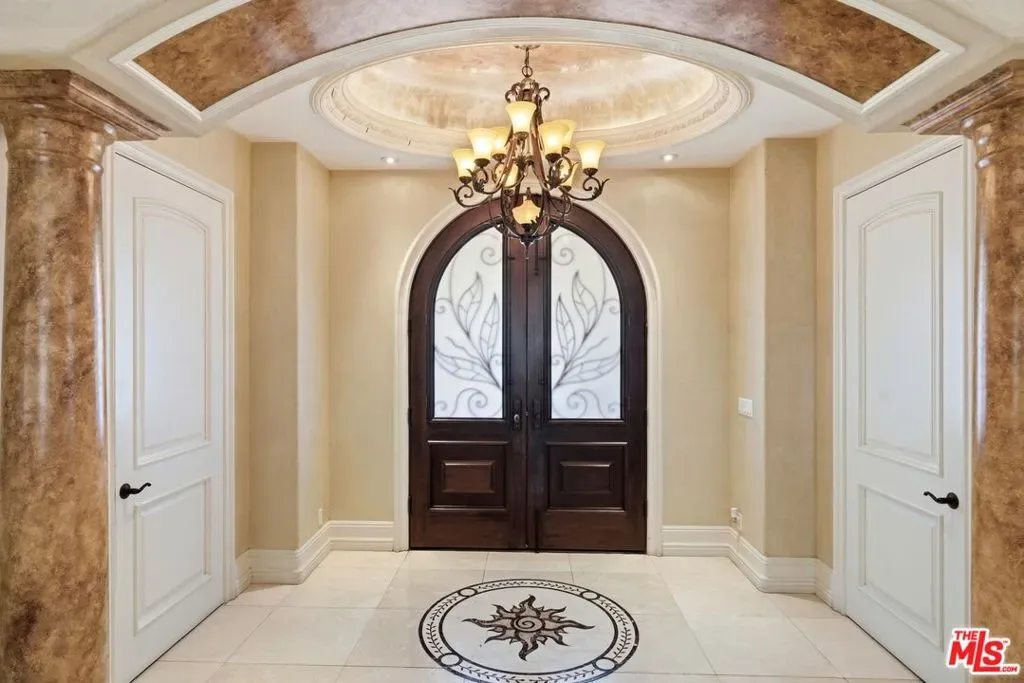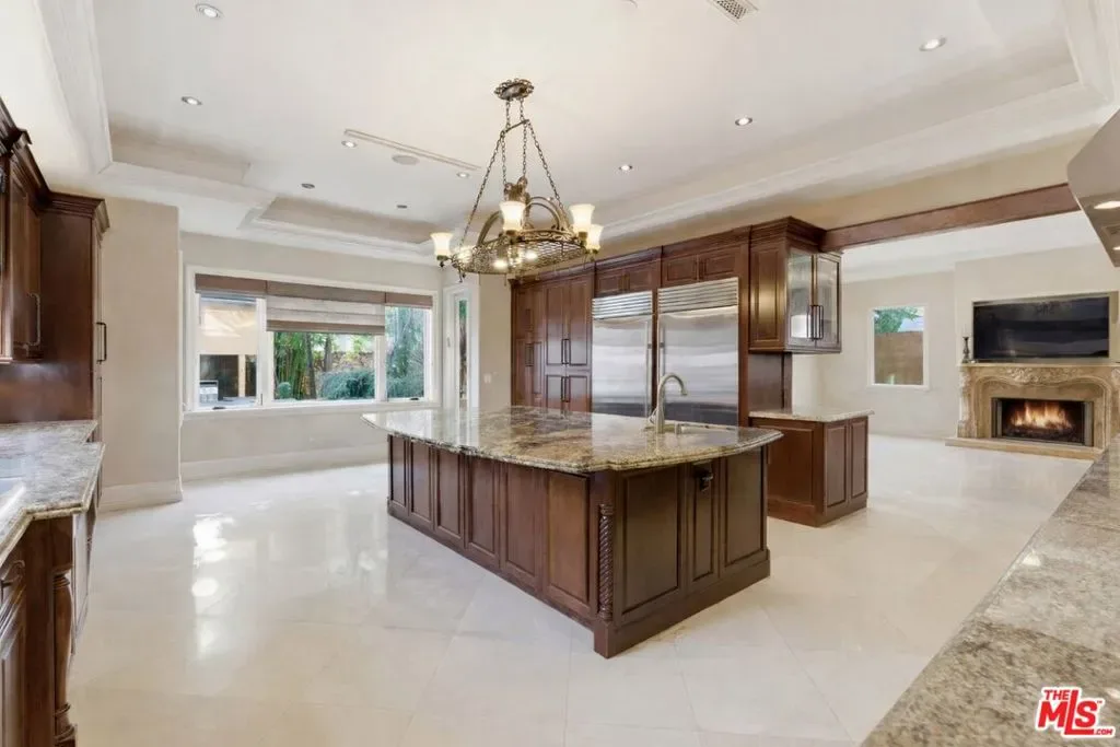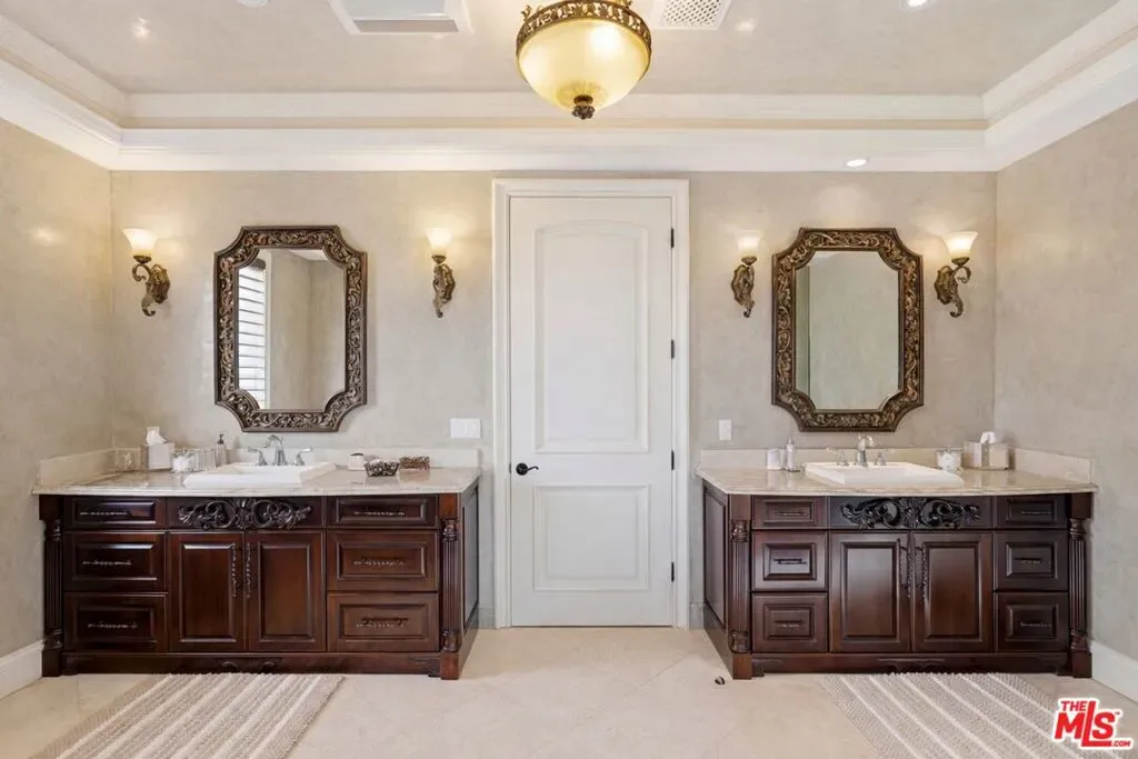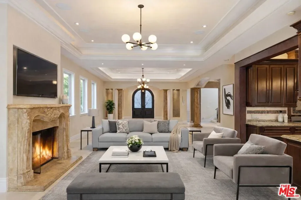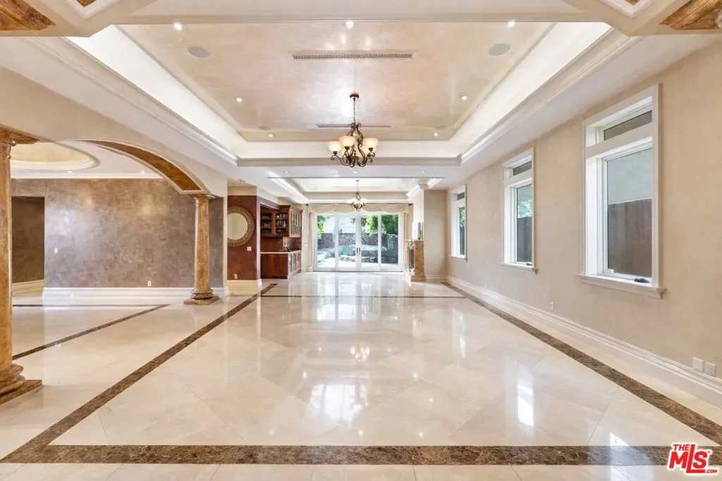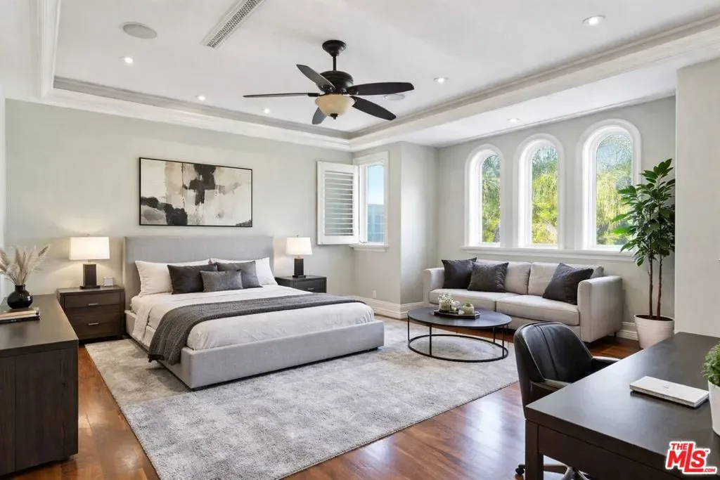 Beautiful Mediterranean custom home offering over 6,000 square feet with 6 bedrooms and 7.5 bathrooms, featuring a spacious open floor plan designed for both comfortable living and elegant entertaining. Ideally located mid-block with a gated front entry and auto-gated flagstone driveway and walkway.Enter through a grand living room that flows seamlessly into the formal dining room and a rear-facing family room with fireplace and French doors opening to a covered patio, tiled yard, and entertainer’s outdoor kitchen complete with BBQ and bar area.The oversized chef’s kitchen features a large center island, dual sinks, and top-of-the-line stainless steel appliances including a Wolf range with double ovens, wine refrigerator, built-in oversized refrigerator/freezer, and a butler’s pantry with warming drawer and microwave. A bright breakfast area overlooks the backyard with direct patio access.A sun-filled staircase leads to the second level where four spacious bedrooms each feature updated marble and tile ensuite bathrooms. Front-facing bedrooms offer balconies with Century City views.The luxurious primary suite includes a fireplace, French doors opening to a private balcony with treetop and sunset views, and a large custom walk-in closet with center island and built-in dressers. The spa-inspired primary bathroom features dual vanities, a soaking tub, and steam shower.The lower level offers a large open game room/den with projector theater, two additional ensuite bedrooms, and a powder room. Additional features include marble and hardwood flooring, Venetian plaster walls, built-in sound system, four-zone HVAC, solar panels, alarm system, and a second-floor laundry room with ample storage. Beautifully maintained and ideally located near Westfield Century City Mall, UCLA, Westwood Village, and Beverly Hills. Convenient amenities near Ralphs, Gelson’s, Equinox Sports Club, and Eataly. Located within the Westwood Charter School district. Easy access to 405 and 10 Freeway. *Photos are virtually staged. *Home can be delivered furnished with custom traditional furniture*