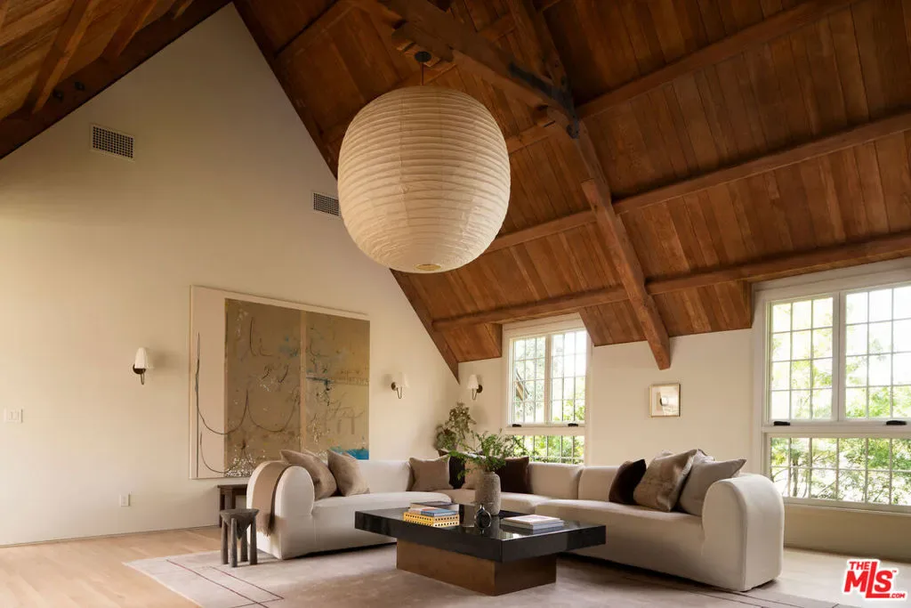 Set behind the private gates of Laughlin Park, one of Los Feliz’s most coveted enclaves, this elegantly reimagined residence offers a timeless blend of artful craftsmanship and thoughtful design. Spanning over 4,600 square feet across a main house and guest house, the property has a masterful layout where each space flows effortlessly into the next, marked by warmth, intention, and ease. Inside, richly layered interiors reveal natural stone flooring, accordion-style doors, and curated finishes that speak to understated luxury. Oversized windows bathe the home in natural light, illuminating expansive yet inviting living spaces. The chef’s kitchen features custom cabinetry, marble countertops, and top-tier appliances, offering both style and function. Upstairs, the formal living room, anchored by a stately fireplace and dramatic beamed ceiling, sets the tone for elegant entertaining. The primary suite serves as a private retreat, serene, spacious, and refined with a large walk-in closet and dressing area, balancing the home’s original character with modern comfort. Step outside to a private sanctuary. High hedges and layered landscaping create a tranquil backdrop for the glistening pool, with a seamless connection to the exceptional guest house. Just moments from Griffith Park and the vibrant eateries and shops of Los Feliz, this architectural gem offers a rare combination of sophistication, privacy, and authenticity in one of L.A.’s most desirable neighborhoods.