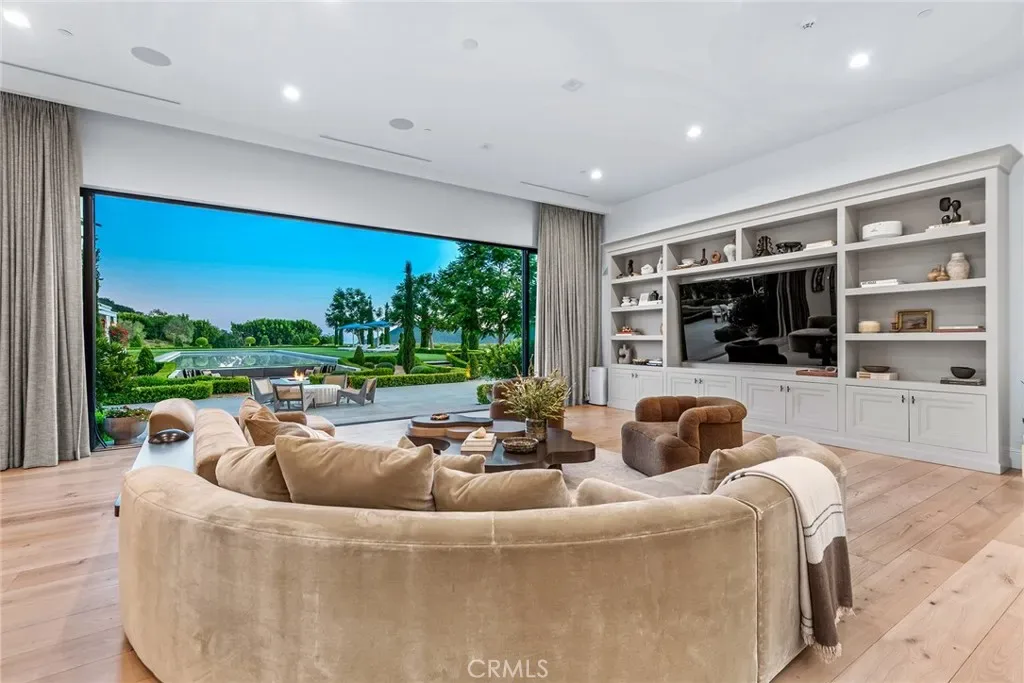 The ultimate trophy estate! A world class European masterpiece that has been recently reimagined and professionally designed to absolute perfection! Ideally located behind massive private gates within the prestigious guard gated community, Bel Air Crest. This landmark estate is set on over 3.5 usable acres and boasts panoramic views with exceptional total privacy! Spanning 17,254 square feet with every amenity desired and expected for a home of this caliber. Features include a dramatic grand entry enhanced by a 35 foot custom glass domed ceiling. The all new center island kitchen opens seamlessly to the family room and is graced with new glass pocket doors, fireplace and views. Upstairs there is an epic primary suite with commanding jet liner views, fireplace, two walk in closets and an all new Four Seasons quality bathroom. There are 5 more en-suite bedrooms on this level. The lower level is an entertainers dream! There is a state of the art theater, huge game room and lounge, wet bar, wine cellar, gym with separate massage room, and a hair salon/barber shop! The resort quality grounds are second to none! There is an amazing Olympic sized pool, tennis court with lights, chef’s outdoor kitchen, two bathrooms, custom built children’s playhouse with its own HVAC, batting cage, pool cabanas, vegetable garden, multiple fire features, outdoor wellness center with cold plunge and sauna and massive manicured lawns all with unobstructed views and complete privacy. Other amenities include an elevator, tremendous solar array, smart home system, all new doors and windows, huge motor court big enough for 30+ cars and so much more! One of Los Angeles’ finest properties! A very special offering!