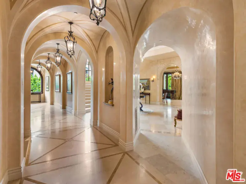 Situated in a prestigious Bel Air Crest 24-hour guard gated community sits this remarkable end of cul-de-sac estate epitomizing luxury and sophistication. Offering an extraordinary living experience, this property welcomes you with a grand entrance featuring a meticulously landscaped lot, lush greenery and a sweeping gated driveway to a 7-car garage. An impressive architectural facade with timeless design seamlessly blends modern elements with classic charm throughout this estate. Upon entrance, you are embraced with soaring ceilings, an abundance of natural light streaming through large window sand a spacious open floor plan. The gourmet Chef’s kitchen features top-of-the-line appliances, custom cabinetry, and an expensive center island with seating. Adjoining the kitchen is a breakfast area, living area with grand piano and a imposing formal dining room ideal for dinner parties. Offering five luxurious bedrooms, including an exquisite primary suite that serves as its own private retreat. The primary bedroom features a spacious layout, sitting area, privatebalcony overlooking the lush grounds and a tranquil spa-like HIS and HER dual bathrooms complete with a soaking tub, walk-in shower and large walk-in closets.Additional amenities in this home include a media room, fitness center, wine cellar, sauna and elevator. The outdoor is a sanctuary of its own, providing a sereneescape from the bustling city with expansive canyon, golf course and city views. The large backyard showcases a pristine infinity pool, spa, BBQ, vegetable/fruit garden and a spacious patio area perfect for outdoor dining and relaxation. Lush landscaping and mature trees surround the property, offering privacy and asense of tranquility. Not to be overlooked, the Bel Air Crest community includes a new clubhouse with a huge brand new gym, putting greens, multiple tennis and basketball courts and children’s playgrounds. With its luxurious design, impeccable craftsmanship, and exceptional amenities, this estate exemplifies theepitome of luxury living in Bel Air.