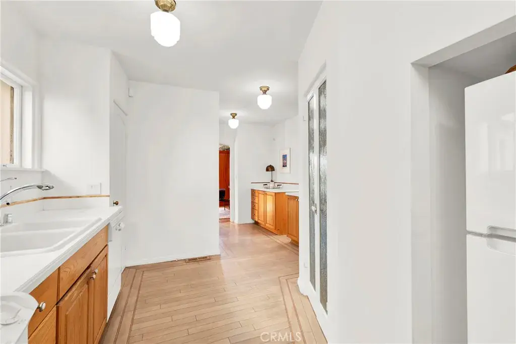 Rich with original details, the home features hardwood floors throughout and a breathtaking wood-paneled dining room crafted from imported African hardwood. The original cabinetry and millwork remain beautifully preserved, offering timeless elegance and unmatched authenticity. This enchanting property includes 3 bedrooms, 2 bathrooms, plus a versatile bonus area ideal for an office, workshop, studio, or creative space. The upper level hosts two spacious bedrooms with walk-in closets and a generous bathroom. The main living level is anchored by a light-filled living room with city views and the showpiece paneled dining room. On the entry level, a bedroom with an adjoining sitting room and bathroom creates a perfect guest suite or private retreat.
