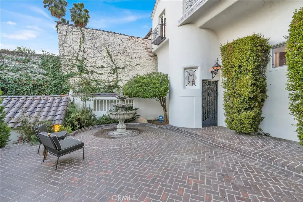 The outdoor spaces are equally magical. A birds’ eye viewing perch, two landscaped patios, a peaceful lower terrace, and a stunning waterfall — originally constructed with the home — create a serene environment for entertaining or unwinding. The private rear garden feels like a hidden sanctuary in the heart of the city.