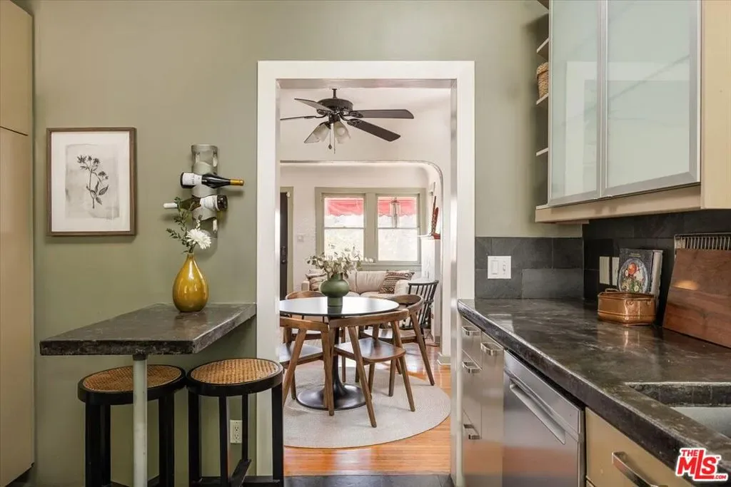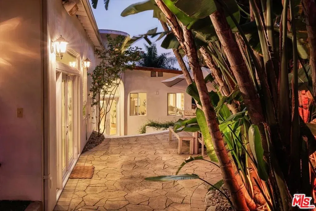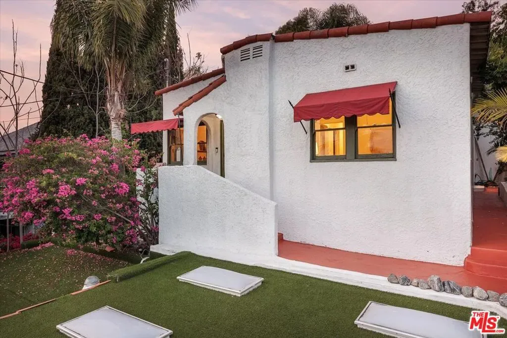 Tucked behind a private wooden gate in the hills of Echo Park, 2123 Branden welcomes you into an expansive compound where classic Spanish architecture meets a serene, resort-like garden retreat. Set on a generous 7,460 square foot lot, the property offers a rare sense of space and privacy in the heart of the neighborhood. A staircase leads to the main home, where original Spanish details set the tone; curved archways, a statement fireplace, and a warm, light-filled living and dining room reflect the home’s timeless architecture. Two bedrooms and a hall bath anchor this charming front portion of the home. Beyond, a spacious kitchen opens to a fully permitted addition designed as a tranquil retreat. Soaring ceilings, skylights, and high windows fill the space with natural light, creating an airy atmosphere reminiscent of a Balinese estate. An additional family room and expansive primary suite both open through double French doors directly to the garden, blurring the line between indoors and out. The primary suite features a walk-in closet and a beautifully appointed en-suite bath finished in Venetian plaster with wood accents. Outdoors, the property becomes an enchanting oasis with multiple seating and dining areas woven throughout mature landscaping, lush succulents, and towering birds of paradise. A hot tub and lounge area invite relaxation, along with two outdoor dining spaces. Set within the garden is a charming one-room bungalow with a lofted sleeping area, ideal as a studio, office, or creative retreat. Nearby, the second dining area includes an outdoor kitchenette with sink and mini refrigerator, creating a secluded gathering spot surrounded by greenery. At street level, additional flexible space offers even more possibilities. With its own separate entrance, this one-bedroom unit includes a kitchen, bathroom, generous living and work area, and sleeping alcove. Spacious and versatile, it works beautifully as a guest suite, creative studio, workspace, or even a private music studio. Thoughtfully set apart from the main residence, it adds another layer of uses and possibilities to this unique compound. A detached storage garage and parking for up to four cars provide rare convenience. Private, versatile, and filled with character, this distinctive property offers a tranquil retreat in the heart of Echo Park.