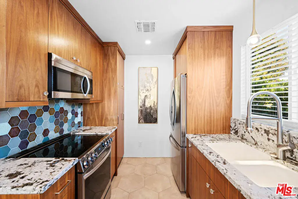 Experience elevated living in the heart of Westwood/Century City. This impeccably reimagined 3-bedroom, 2-bath Traditional residence has been thoughtfully renovated, showcasing bespoke contemporary finishes throughout. A gated, private front yard welcomes you with a beautifully tiled patio and designer planters, offering a serene introduction to the home’s sophisticated design. Inside, sun-filled living spaces unfold effortlessly, with expansive sliders opening to the front patio perfect for indoor-outdoor entertaining. The open-concept layout flows into a designer kitchen outfitted with custom cabinetry, waterfall-edge granite countertops, a breakfast bar, striking glass tile backsplash, and a full suite of premium stainless-steel appliances, including high-end laundry. Rich hardwood flooring featuring a curated mix of ipe, walnut, and mahogany adds warmth and character throughout. The primary suite is a peaceful escape, complete with a walk-in closet, private access to the rear patio, and a tranquil yard. The spa-inspired primary bath offers dual vanities, granite counters, a luminous tiled shower, and a separate soaking tub for ultimate relaxation.The main residence and rear ADU are fully fenced and function independently, they appear as completely separate properties. Ideally located moments from Westfield Century City, Beverly Hills, UCLA, and the highly regarded Westwood Charter Elementary, this home presents a rare opportunity to enjoy refined living in one of Los Angeles’ most desirable neighborhoods. The home is available fully furnished for immediate enjoyment.