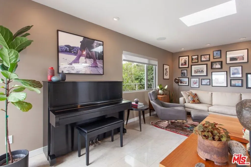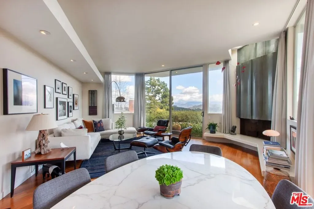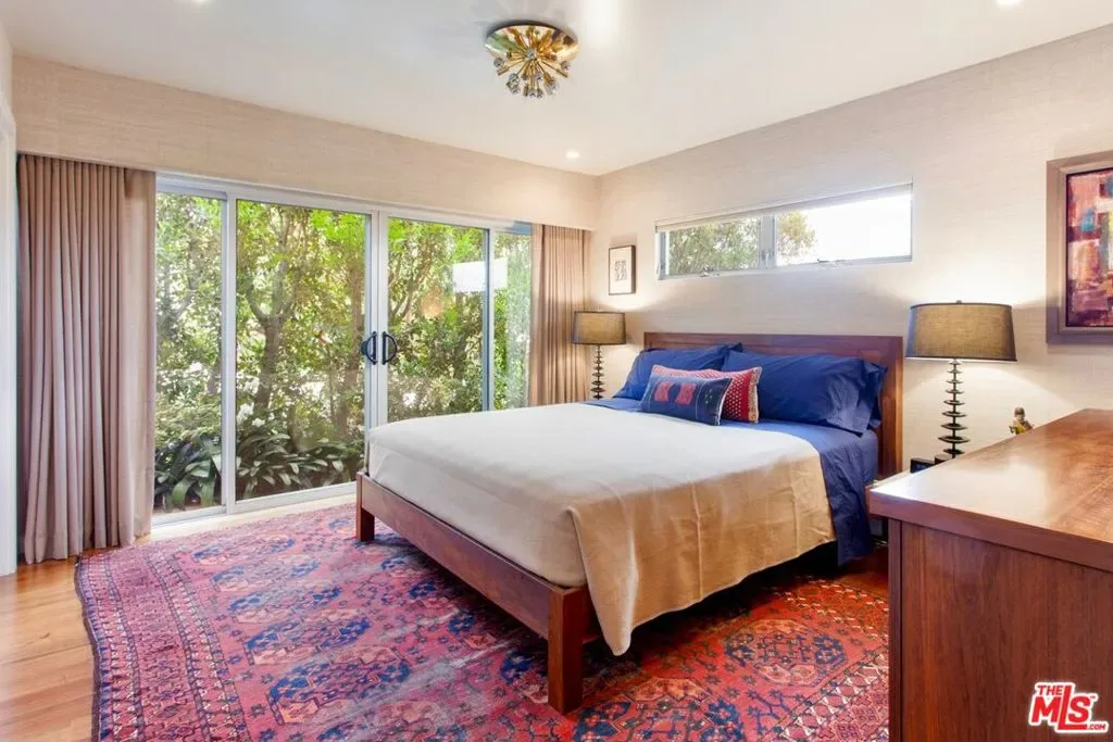 This fully furnished, sun drenched mid-century architectural home in Laurel Canyon is available for a seasonal lease beginning June 1. Originally designed by Kenneth Lind AIA, the house takes advantage of natural light and stunning views of the Hollywood sign and the San Gabriel Mountains beyond. A generous great room for relaxing and dining is adjacent to the cook’s kitchen, featuring a breakfast island, high end appliances, and access to outdoor space. The den is furnished with seating for TV watching, a piano and a custom desk. The en-suite primary bedroom includes a California king bed, walk-in closet and laundry, while the 2nd bedroom is currently used as an office with a queen size sofa bed and second bathroom across the hall. A spacious terrace and deck area are ideal for al-fresco dining, lounging, and enjoying the sunshine. Use of the garage is not included, but street parking is available in front of the house. The property is located on a cul-de-sac street 15 minutes from the Sunset Strip, and offers easy access to West Hollywood, Beverly Hills and the San Fernando Valley.