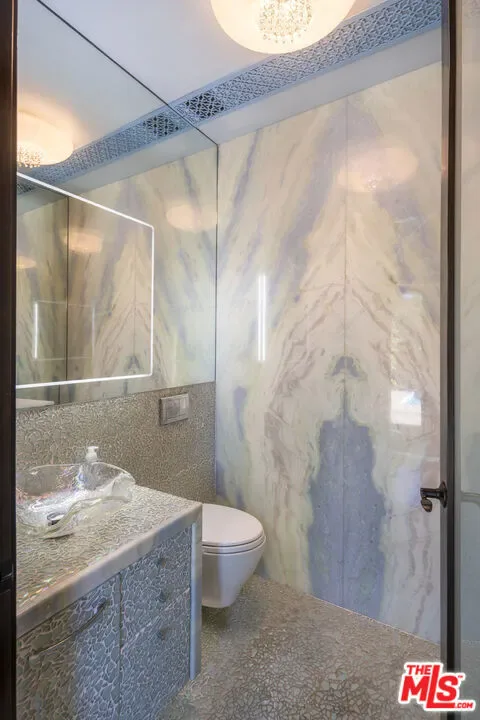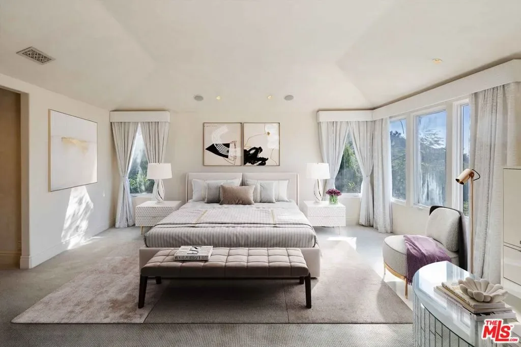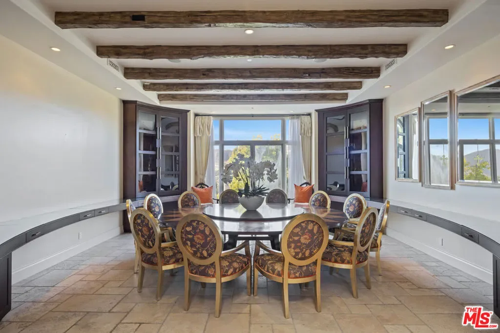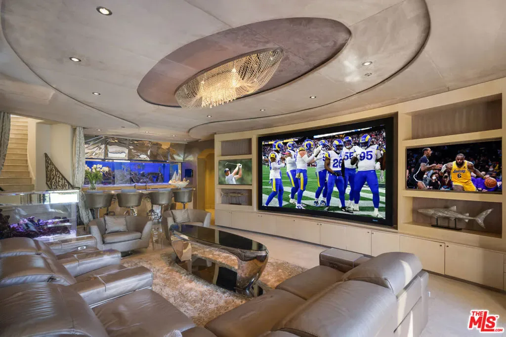 This stunning estate, located in the prestigious gated community of Bel Air Crest, blends luxurious living with elegant design and breathtaking outdoor spaces. The home showcases an array of upscale features, including an expansive media room with a built-in aquarium, mirrored walls, and custom lighting, offering the ultimate entertainment experience. Vaulted ceilings and large windows flood the interior with natural light, creating a warm and inviting atmosphere. The gourmet kitchen is equipped with state-of-the-art appliances, custom cabinetry, and a central island, perfect for culinary enthusiasts. The spacious bedrooms feature serene views, plush carpeting, and private access to outdoor patios or balconies. A luxurious primary suite boasts a spa-like bathroom, complete with premium fixtures and intricate tile work. Outdoor living spaces are equally impressive, highlighted by a sparkling pool with a built-in slide, a soothing spa, and a water feature surrounded by lush landscaping for added privacy. Multiple terraces, covered patios, and outdoor dining areas make this home an entertainer’s dream. A well-appointed laundry room and chic powder rooms further enhance the home’s functionality and style. Set in a desirable location within Bel Air Crest, with scenic views of rolling hills, this estate offers the perfect combination of tranquility and sophistication, making it a rare gem for discerning buyers.
