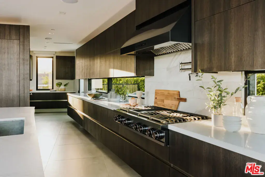 Experience modern California luxury in this architecturally stunning Brentwood estate, completed in 2020. This newer construction home features 5 bedrooms, 5.5 bathrooms, and approximately 6,468 sq ft of refined living space set on a 9,724 sq ft lot with breathtaking panoramic views stretching from the Pacific Ocean to Downtown Los Angeles. Designed for contemporary living, the open-concept floor plan showcases soaring ceilings, floor-to-ceiling glass walls, and designer finishes throughout. The gourmet chef’s kitchen offers top-of-the-line appliances, sleek custom cabinetry, and a statement island ideal for both entertaining and everyday life. Luxury amenities include a private movie theater, temperature-controlled wine cellar, and a 1,600sqft. rooftop deck capturing 360-degree views of the city and coastline. Outdoors, enjoy resort-style living with a sparkling pool and spa, built-in BBQ, and fire pit lounge perfect for hosting gatherings under the California sunset. Located in one of Brentwood’s most desirable neighborhoods, this modern estate is just minutes from scenic hiking trails, Santa Monica beaches, and the heart of the Westside. A rare opportunity to own a move-in ready luxury home in Los Angeles, offering the perfect blend of elegance, comfort, and iconic Southern California lifestyle.