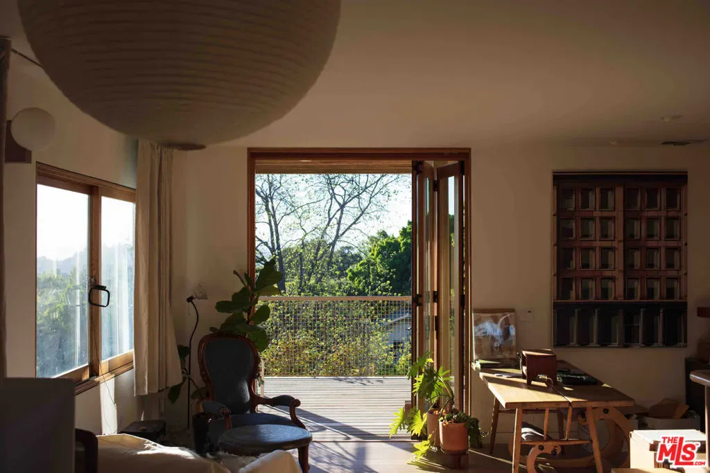 Two months furnished lease in this beautiful architectural home in Echo Park. Close to coffee shops and restaurants. Beautiful views from the balcony into the hills and from the covered patio, which can be completely opened up from the living room into the garden. Remodeled by Mexico City-based architecture firm PRODUCTORA. They extended the small California Bungalow through a grid-like steel frame. “Six cubic squares make up the framework of the addition, which includes covered terraces, the upstairs master bedroom, and two new interior spaces that are incorporated into the kitchen area on the lower level. The placement just a few feet shy of the original facade creates a transitional space that mediates between the house and garden, protecting it from the afternoon sun. Focusing on a minimal material palette, elements of the design are reinforced and repeated to create a cohesive set of interconnected spaces. The same marble that lines the bathtub also forms the kitchen countertop. Highlighting the tension between texture and solid color, the architects incorporated oak wood and concrete flooring with wooden cabinetry painted in soft pinks and dark green.” (Dwell, 2017)