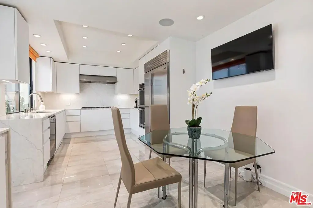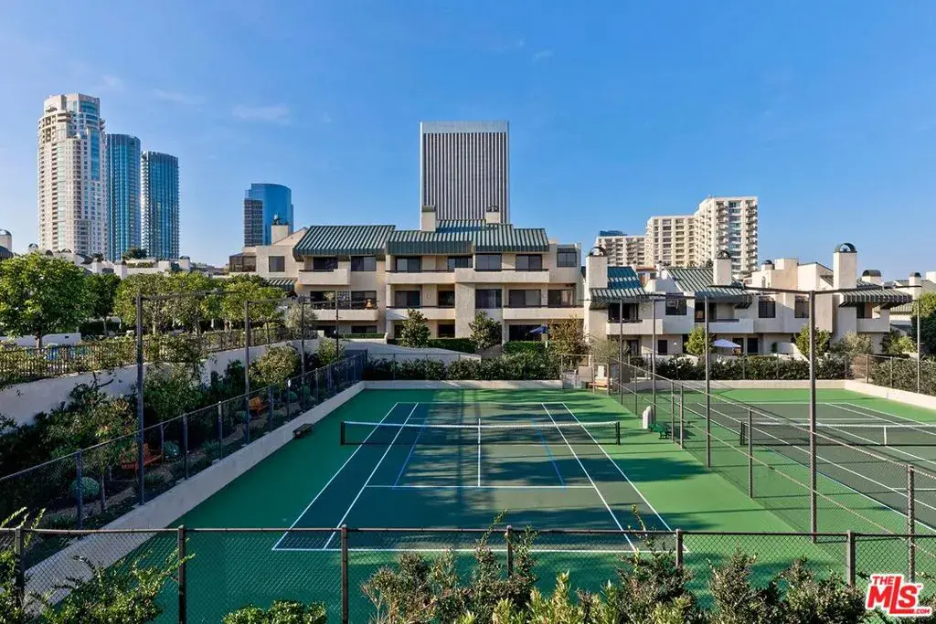 Exquisite, sleek, and sun-filled, this contemporary two-bedroom townhome offers sophisticated living in the heart of Century City’s coveted Century Hill – a prestigious, guard-gated enclave set on 18 acres of lush, landscaped grounds. This immaculate three-level residence welcomes you through a private huge, gated patio on its courtyard level into a voluminous living room with soaring ceilings, a striking marble fireplace, and a dramatic central atrium that floods the space with natural light. The open-concept layout flows effortlessly into a formal dining area and adjacent open-air atrium, perfect for al fresco dining or relaxed entertaining. The modern kitchen is thoughtfully designed with stainless steel appliances, ample cabinetry, and a cheerful breakfast area complemented by a chic powder room and sleek wet bar on the main floor. Upstairs, beneath a large skylight, the grand primary suite offers a tranquil retreat with a cozy fireplace, sitting area, and private balcony showcasing sweeping hillside views. The spa-inspired bath features dual vanities, a soaking tub, separate shower, private water closet, and large walk-in closet. A spacious guest suite with full bath and open den area completes the upper level. On the lower, subterranean level, enjoy direct private access from a two-car garage, a dedicated laundry room, and additional large storage room space (can be converted back to 3rd parking space) enhancing the convenience and livability of this refined home. Century Hill’s resort-style amenities include five sparkling pools, tennis and pickleball courts, an indoor racquetball court, golf driving range, state-of-the-art fitness center, manicured walking paths, and a stunning clubhouse with full catering kitchen all secured by 24/7 guarded access and enhanced by attentive resident services, including day-to-evening package delivery. Ideally located moments from world-class dining, shopping, and entertainment in Century City, Beverly Hills, and Westwood, this exceptional townhome is a rare expression of modern luxury and timeless design.