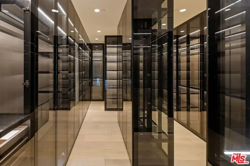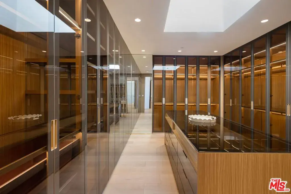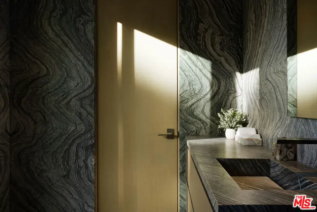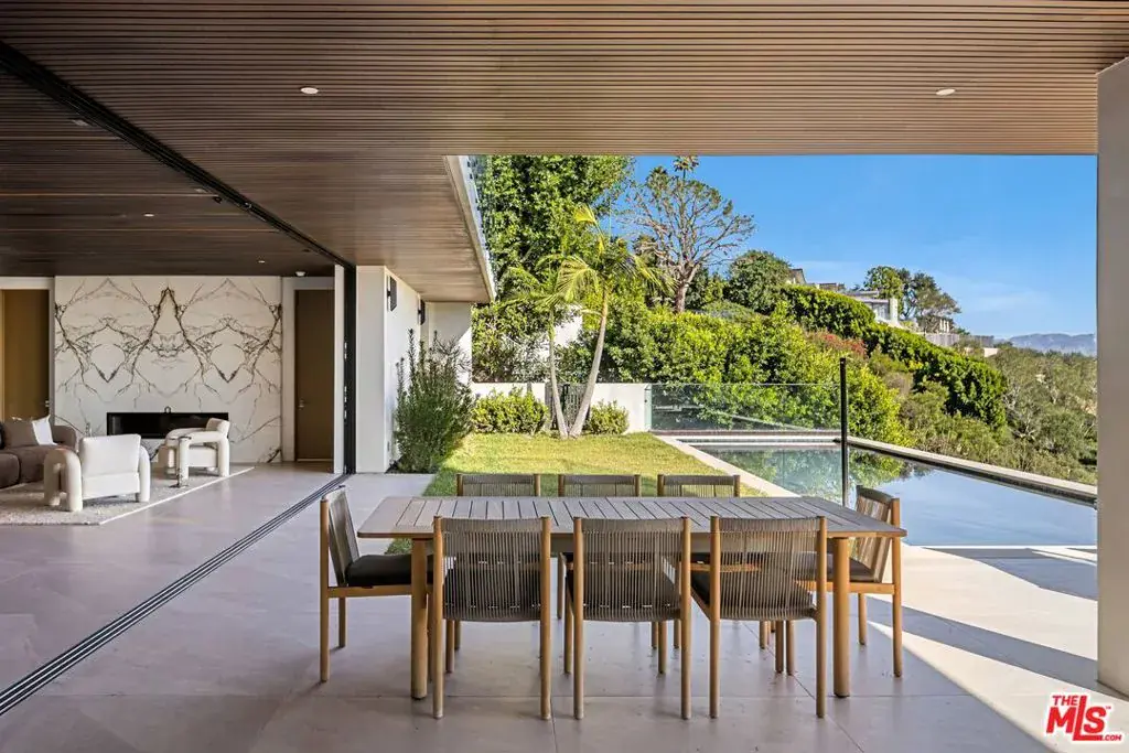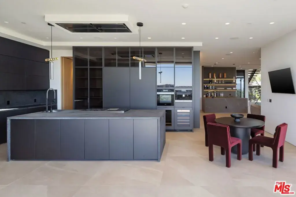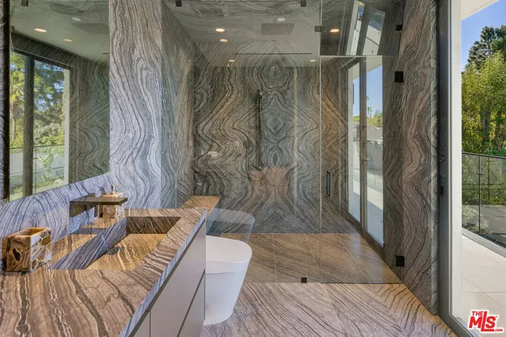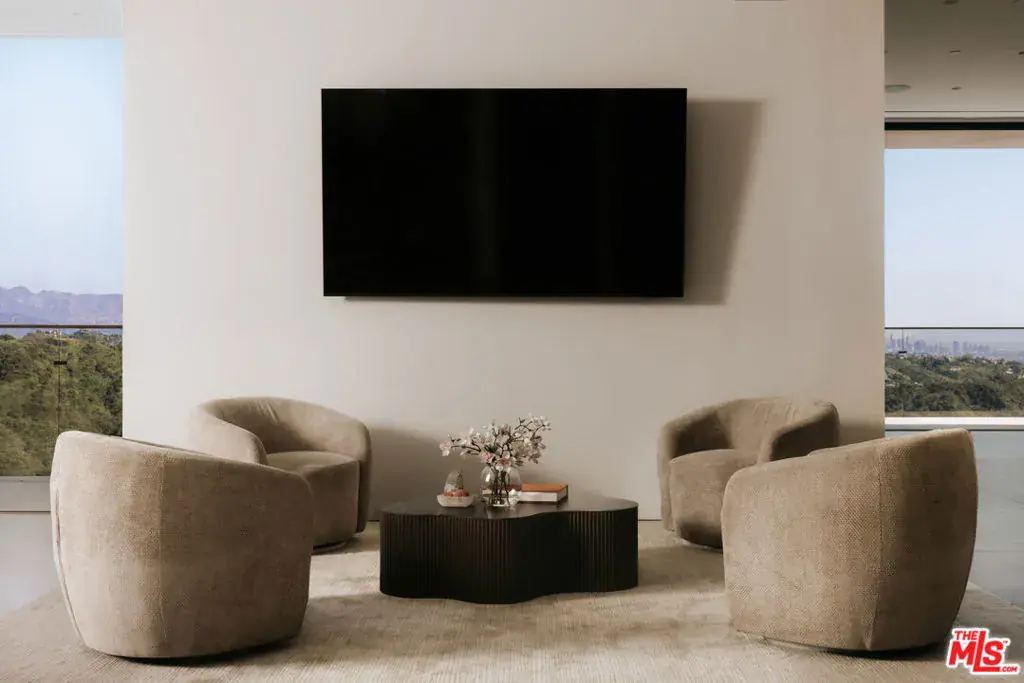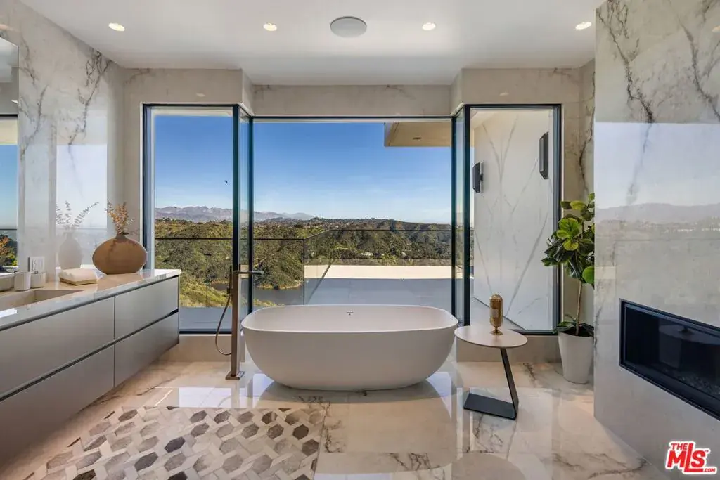 Welcome to 2180 Stradella Road, a striking contemporary new construction with sweeping panoramic views of the reservoir and Downtown Los Angeles. Designed with exceptional craftsmanship and refined finishes, this architectural residence is thoughtfully positioned to maximize its dramatic setting. Soaring ceilings and walls of glass define the open-concept main level, featuring a grand living room with a statement marble fireplace, formal dining room, family lounge, and a chef’s kitchen with adjacent butler’s kitchen, all outfitted with top-tier appliances. A guest suite completes the main floor. The upper level is highlighted by an expansive primary retreat with a wraparound terrace, marble fireplace, dual oversized dressing rooms, and spa-inspired baths, along with three additional en-suite bedrooms and a laundry room. An elevator connects to the lower level, designed for entertaining, with a theater, lounge and bar, wine wall, gym, and two additional bedrooms. Floor-to-ceiling pocket doors open to an outdoor kitchen, resort-style pool, spa, and yard overlooking the reservoir. Set on over an acre in a coveted Bel Air location, this newly built estate offers exceptional views, privacy, and elevated modern living.