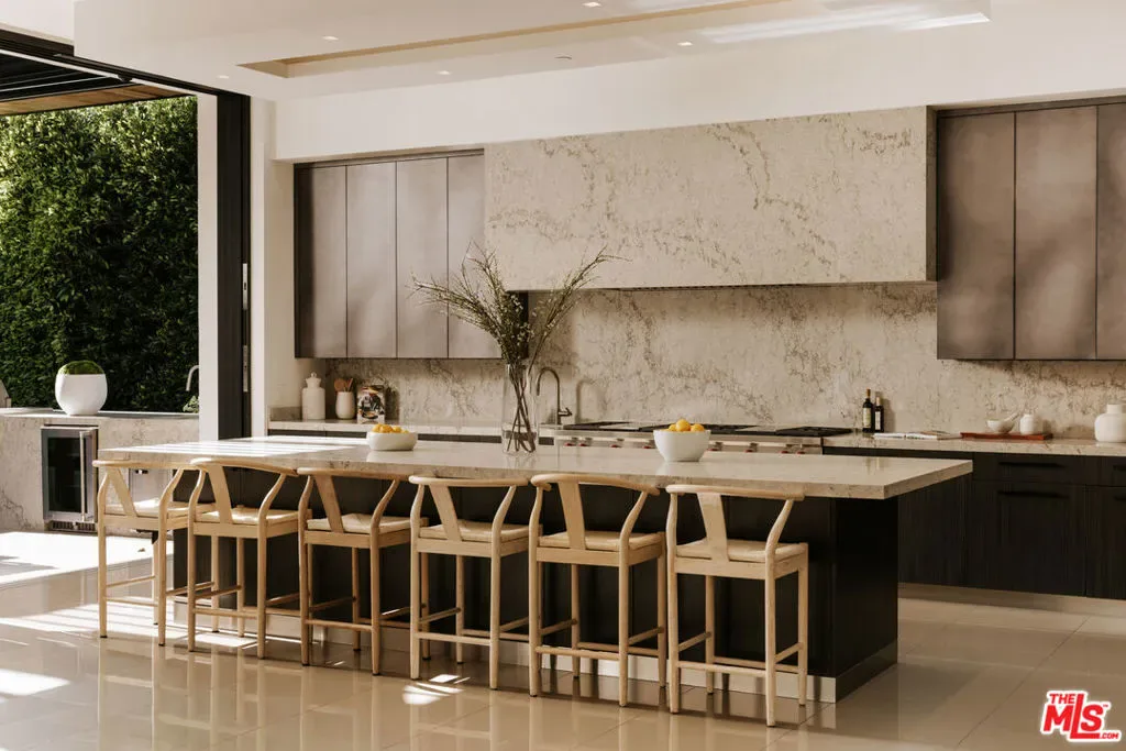 This Contemporary Enclave presents sophisticated design, unparalleled amenities, and quality details. This estate offers an abundance of space and privacy featuring 7 bedrooms, 9 bathrooms, a beautifully landscaped backyard with pool, spa, and detached guest house. Upon entry you’re met with a large foyer with soaring ceilings and a seamless view of your outdoor oasis. The main level features a formal living room with an exquisite fireplace, a large family room radiating warmth throughout with wood-paneled walls, gourmet kitchen with top-of-the-line appliances and over-sized island. Near the family room sits an intimate formal bar, perfect for entertaining guests. Upstairs, the primary bedroom offers a sun-drenched sitting room with dual-sided fireplace, en suite spa like bathroom and dual closets. Three other guest suites with en suite baths and expansive balconies complete the top level. The lowest level is an entertainer’s dream, showcasing a walk-in temperature-controlled wine cellar with lounge area, spacious screening room, recreational room, health spa and guest suite. The resort-like amenities continue in the backyard with floor to ceiling pocket doors leading out to multiple heated patios complete with a firepit and BBQ, providing quintessential al-fresco dining and entertaining areas. This estate complete with a three-car garage and large motor-court in front is the epitome of effortless, refined living in the heart of Brentwood.