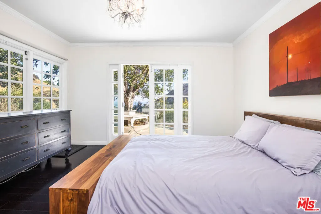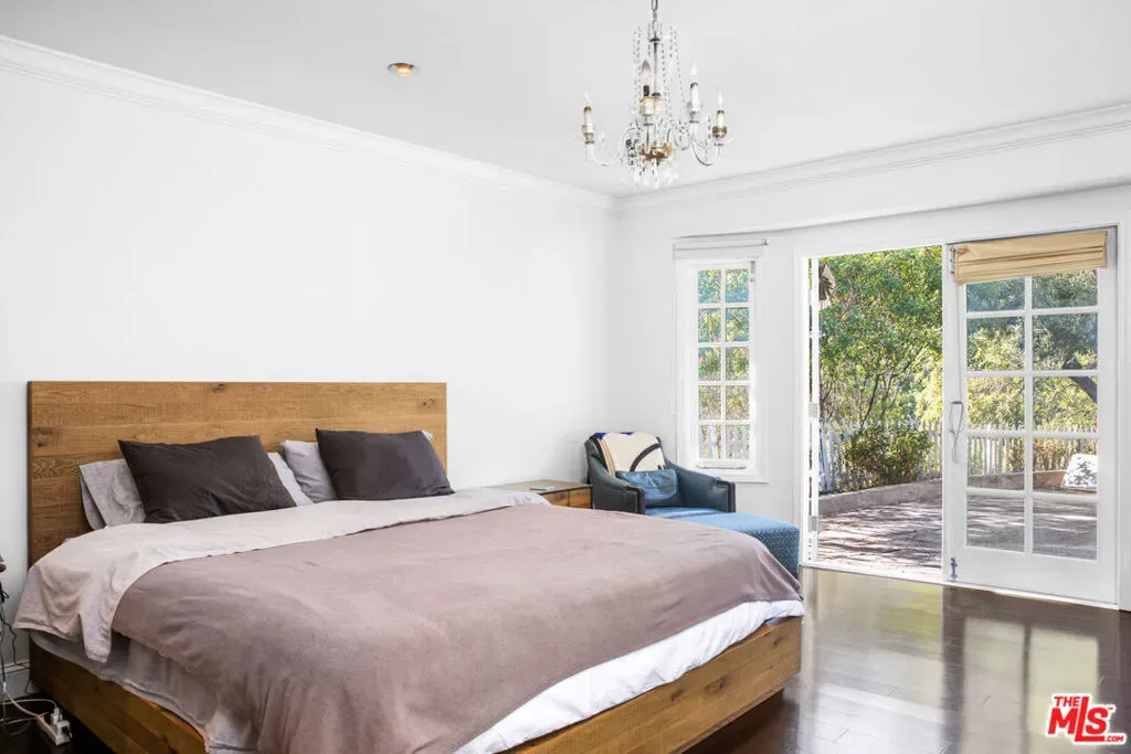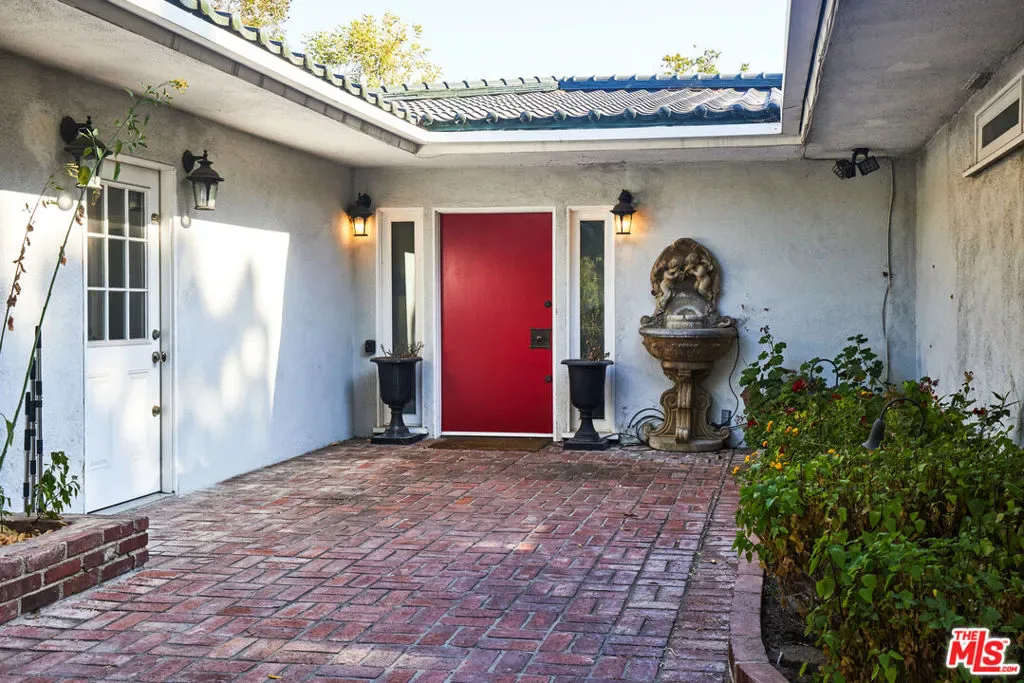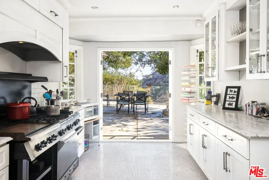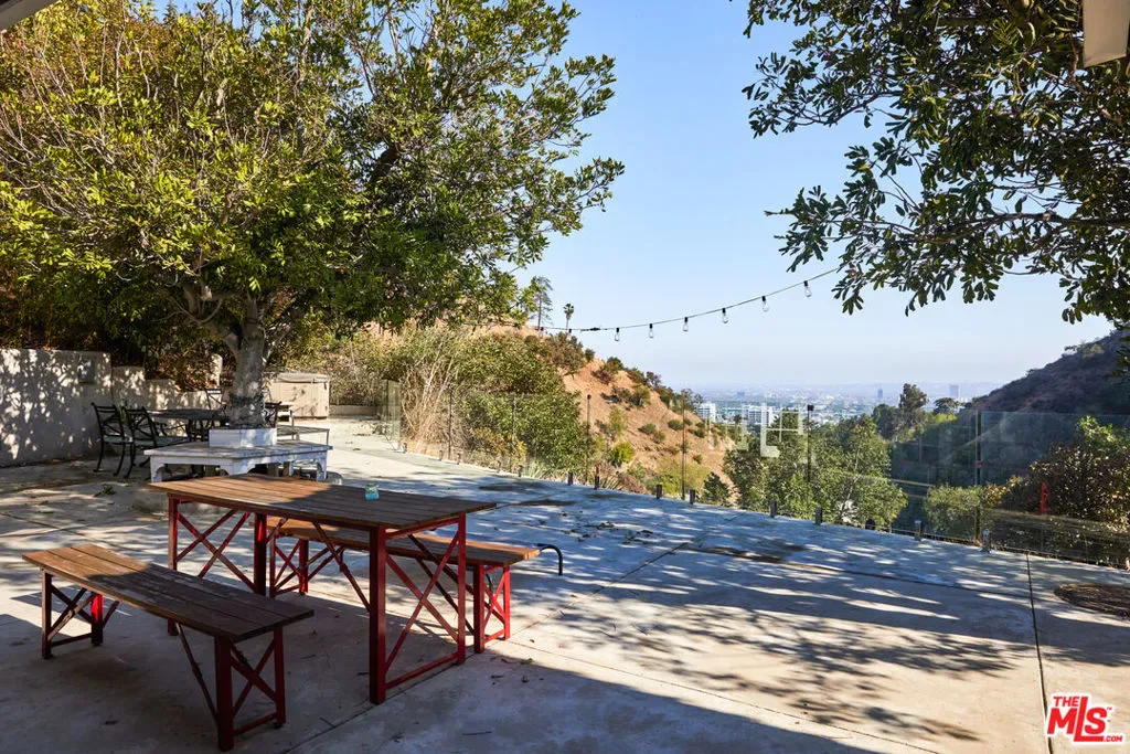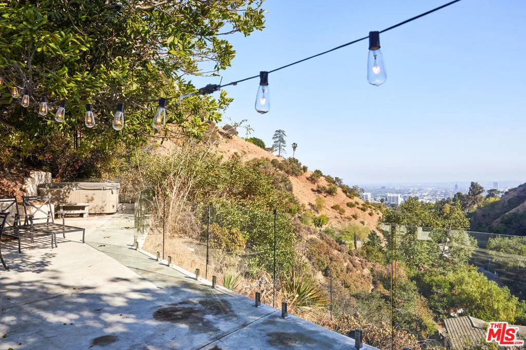 Completely private and serene, this gated compound is set on approximately three-quarters of an acre atop a bluff in the Hollywood Hills. A long, gated driveway leads to a secluded retreat overlooking Outpost Canyon, where terraces, mature olive trees, and an outdoor spa frame sweeping views stretching to the glittering lights of Hollywood. The residence offers a gorgeous primary suite featuring two expansive walk-in closets, along with a well-appointed cook’s kitchen complete with a breakfast area. Designed for both comfort and entertaining, the home includes multiple living spaces, all curated in an understated yet sophisticated style. A separate two-bedroom guest wing provides ideal accommodations for visitors, while parking for up to eight cars ensures convenience and privacy. Located just minutes from some of LA’s best urban hiking at Runyon Canyon, this is a rare blend of tranquility, space, and proximity to the city.